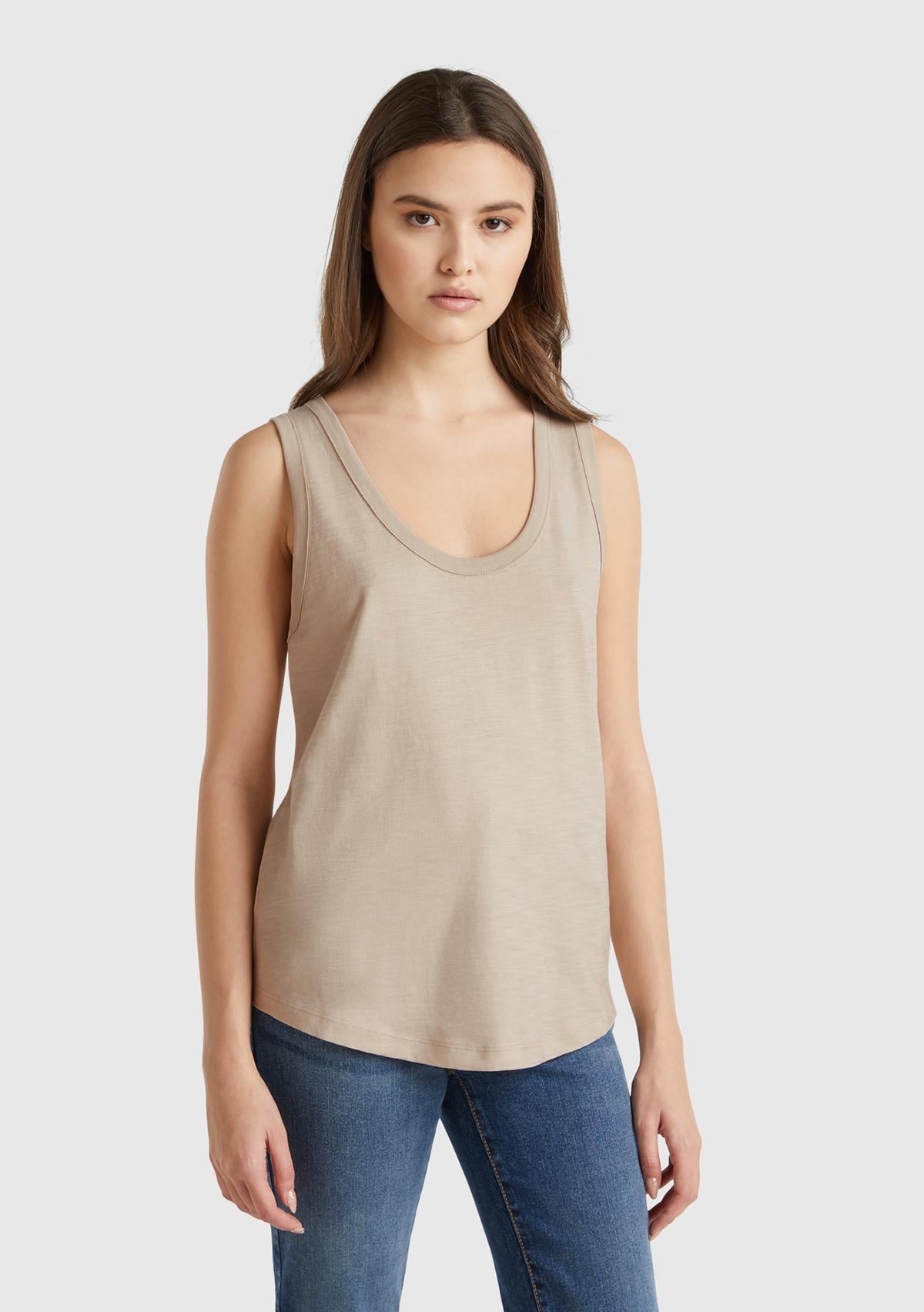 Kadın Bej %100 Pamuk Nervür Detaylı Atlet