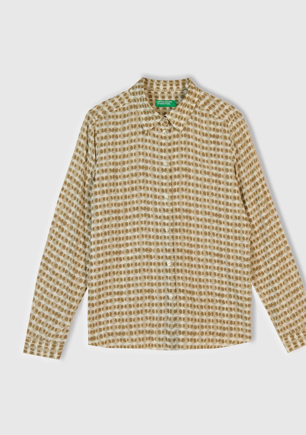 Kadın Bej %100 Viskoz Desenli Gömlek