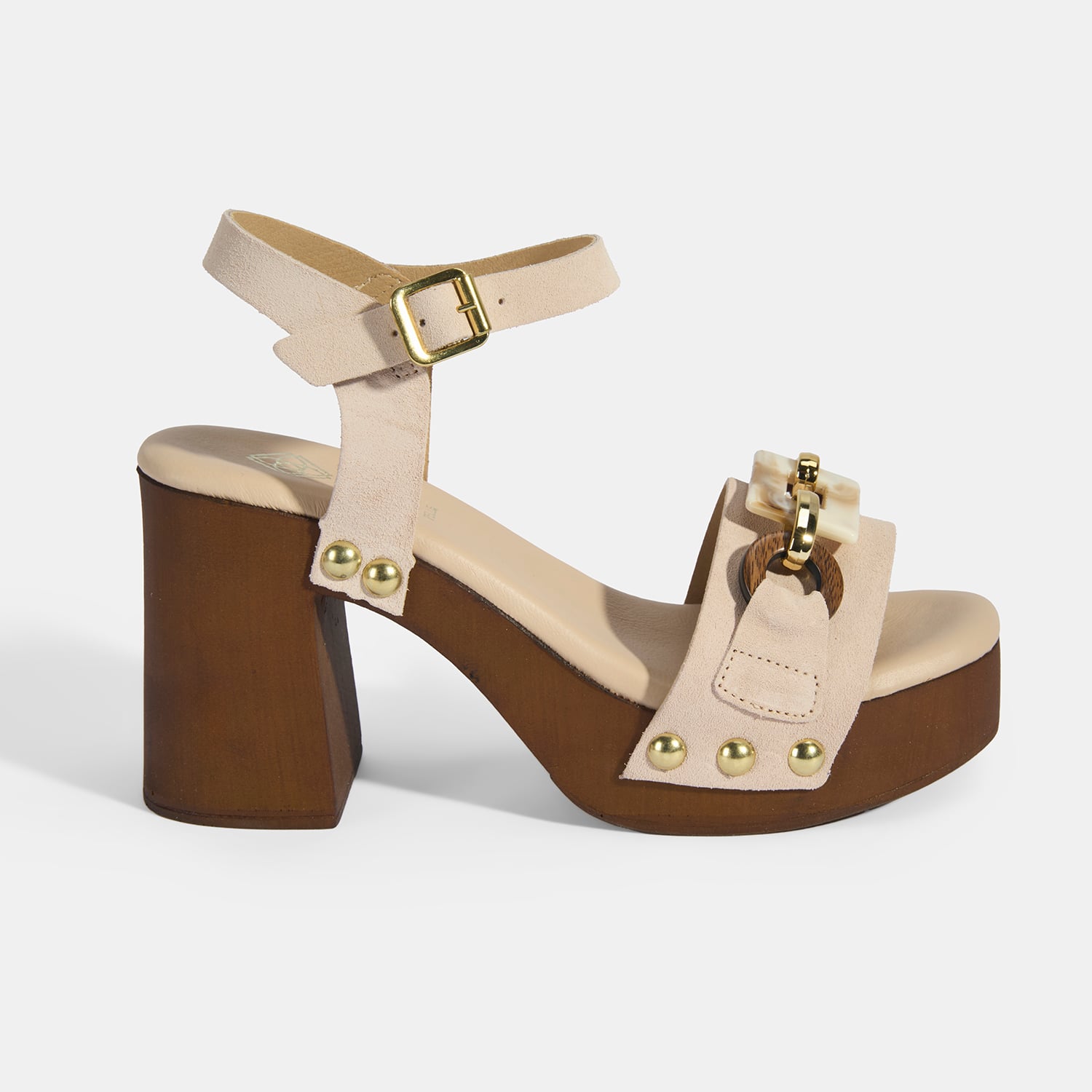 Kadın Bej Aksesuar Detaylı Ayarlanabilir Tokalı Süet Topuklu Sandalet