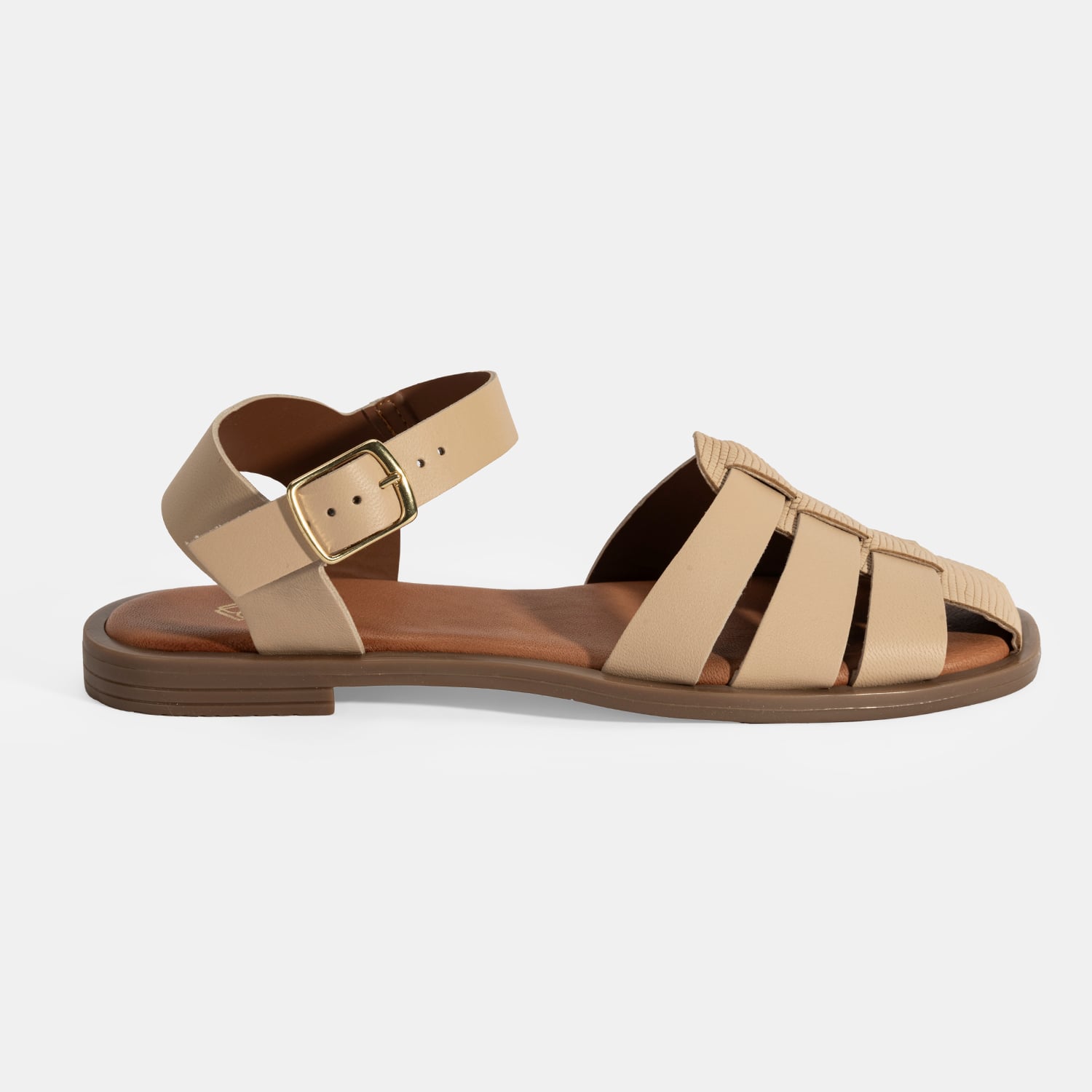 Kadın Bej Ayarlanabilir Tokalı Deri Sandalet