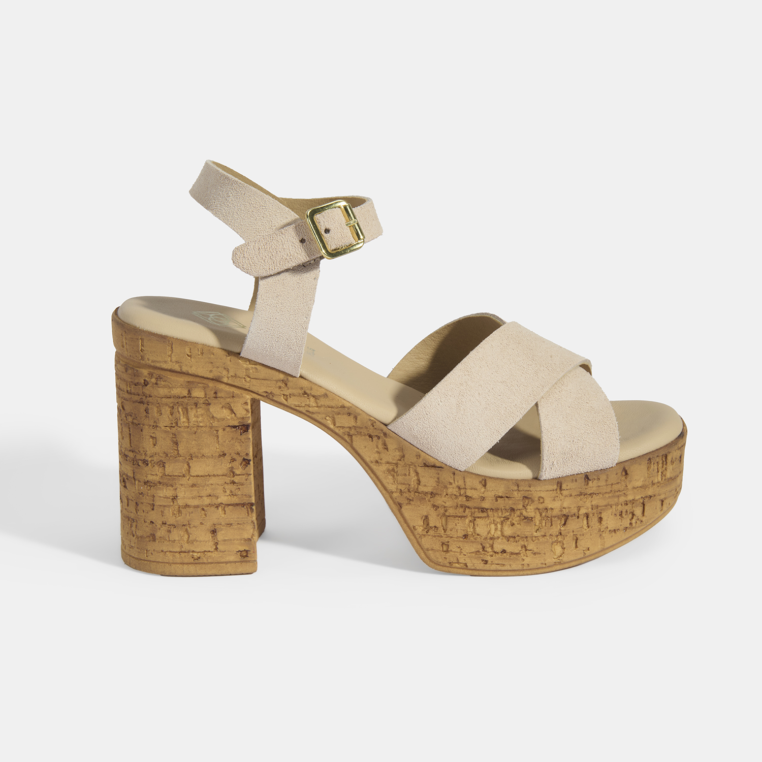 Kadın Bej Ayarlanabilir Tokalı Topuklu Süet Sandalet