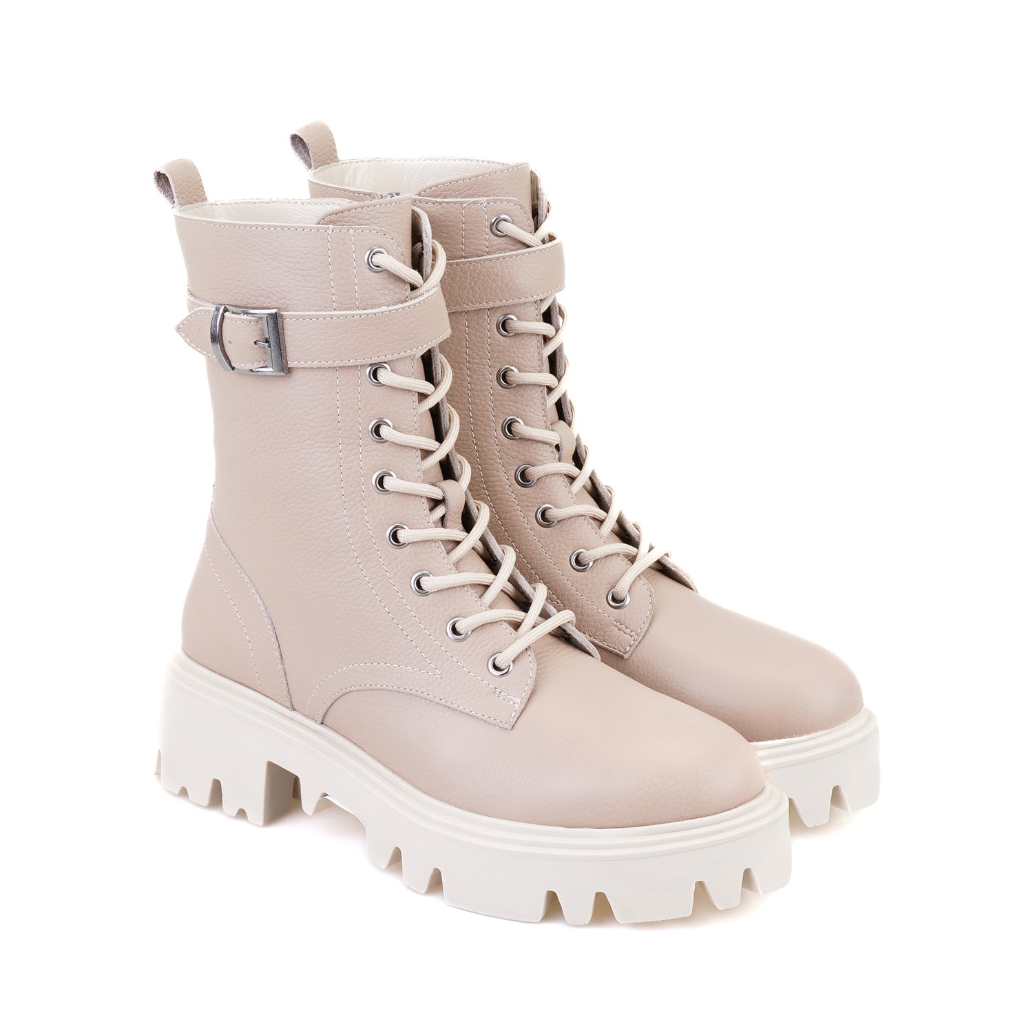 %100 Dana derisinden üretilmiştir.-%100 deri, deri iç tabanlı, tekstil astarlı, ayarlanabilir metal tokalı, thermo tabanlı, bağcıklı kadın postal bot.