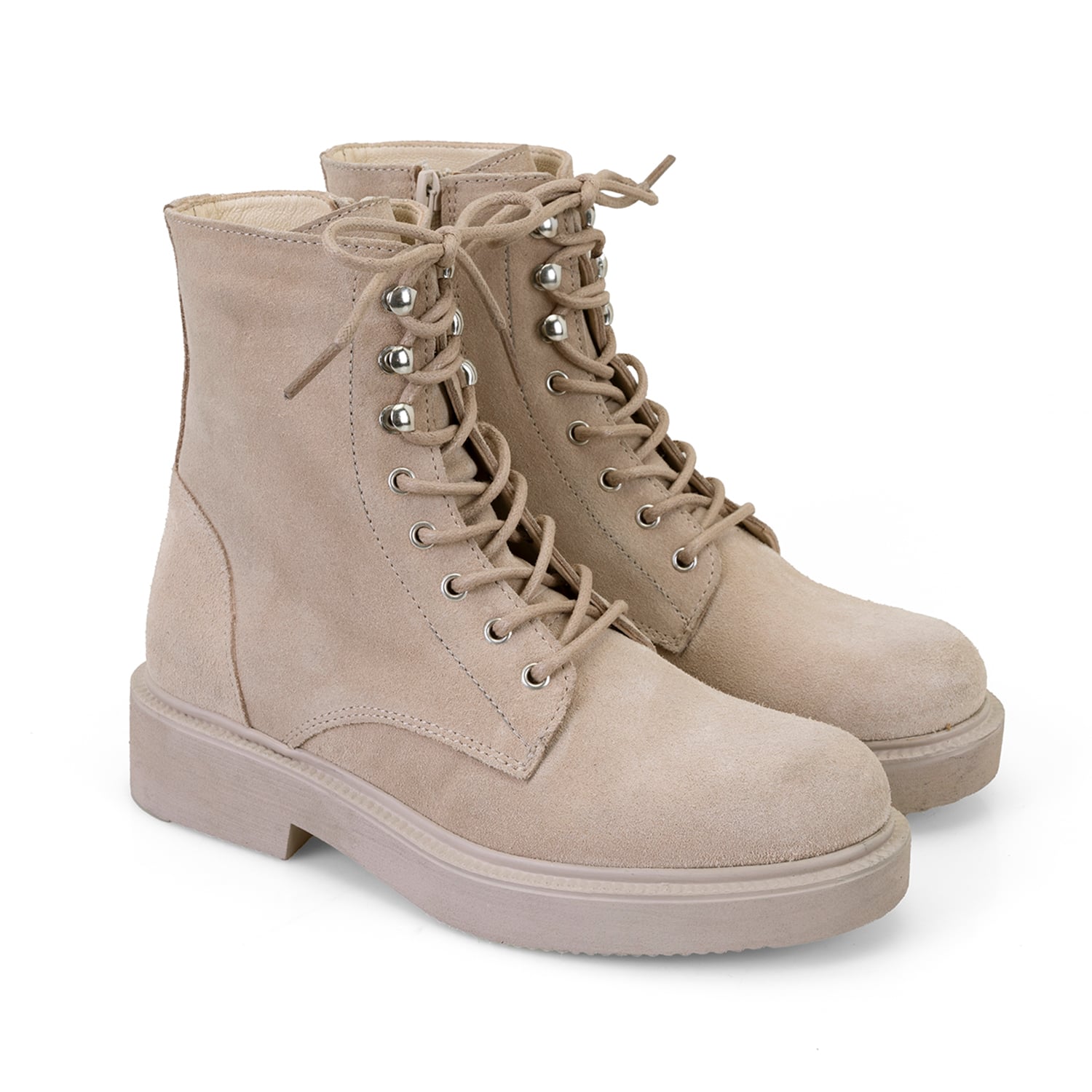 %100 süet deri, deri iç tabanlı, tekstil astarlı, içten fermuarlı, termo tabanlı, bağcıklı kadın postal.