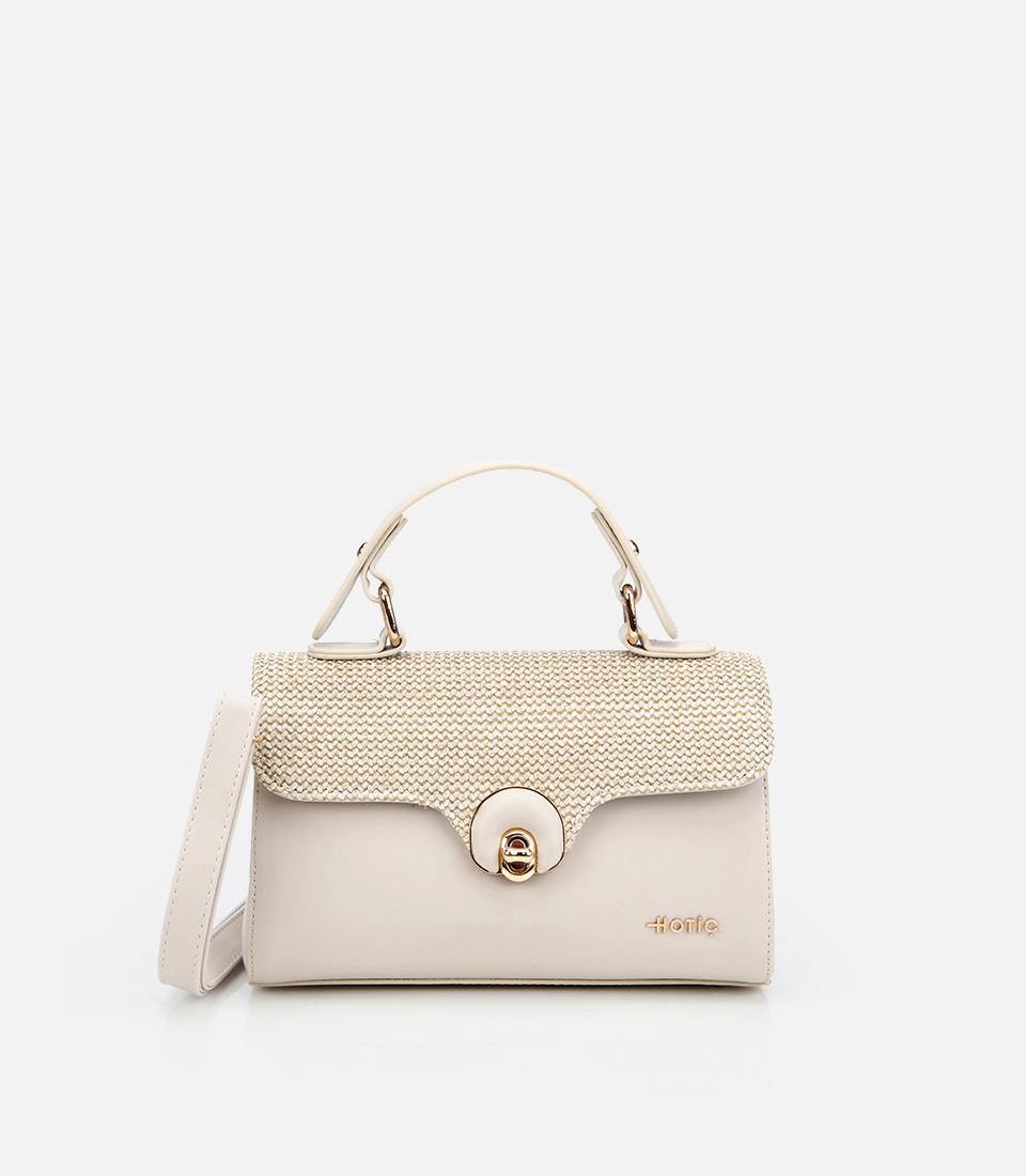 Kadın Bej Hasır Detaylı Omuz Çantası