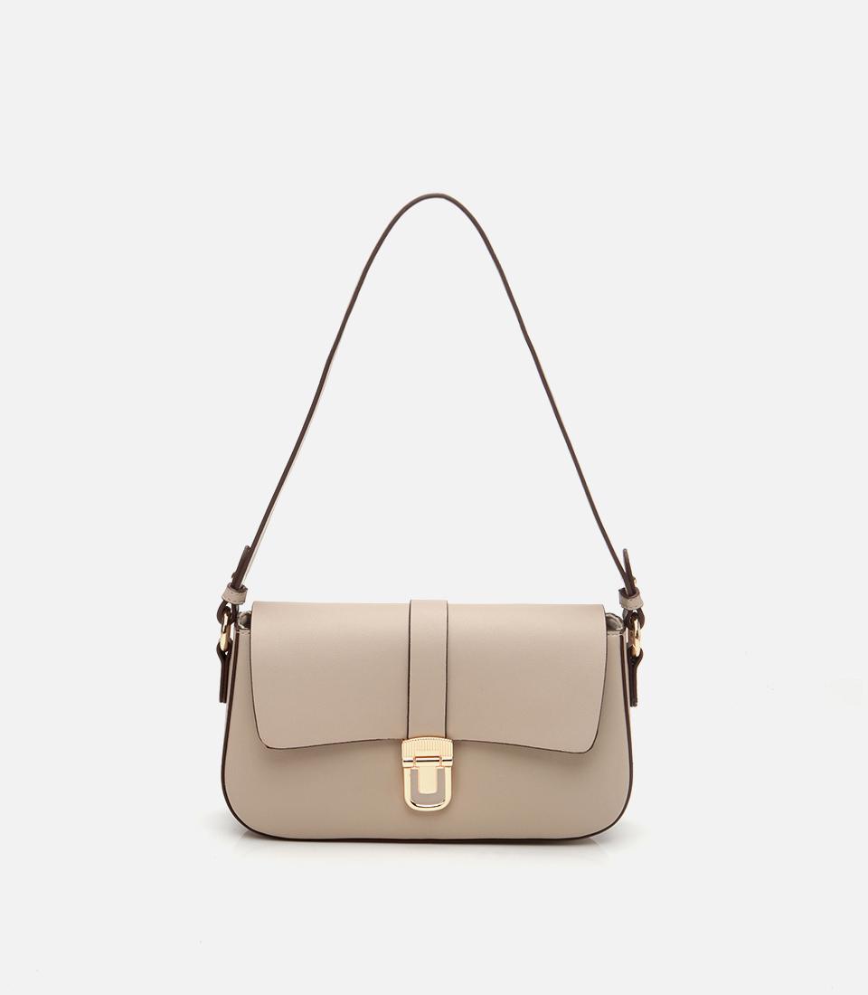 Kadın Bej Kilit Detaylı Çapraz Askılı Çanta