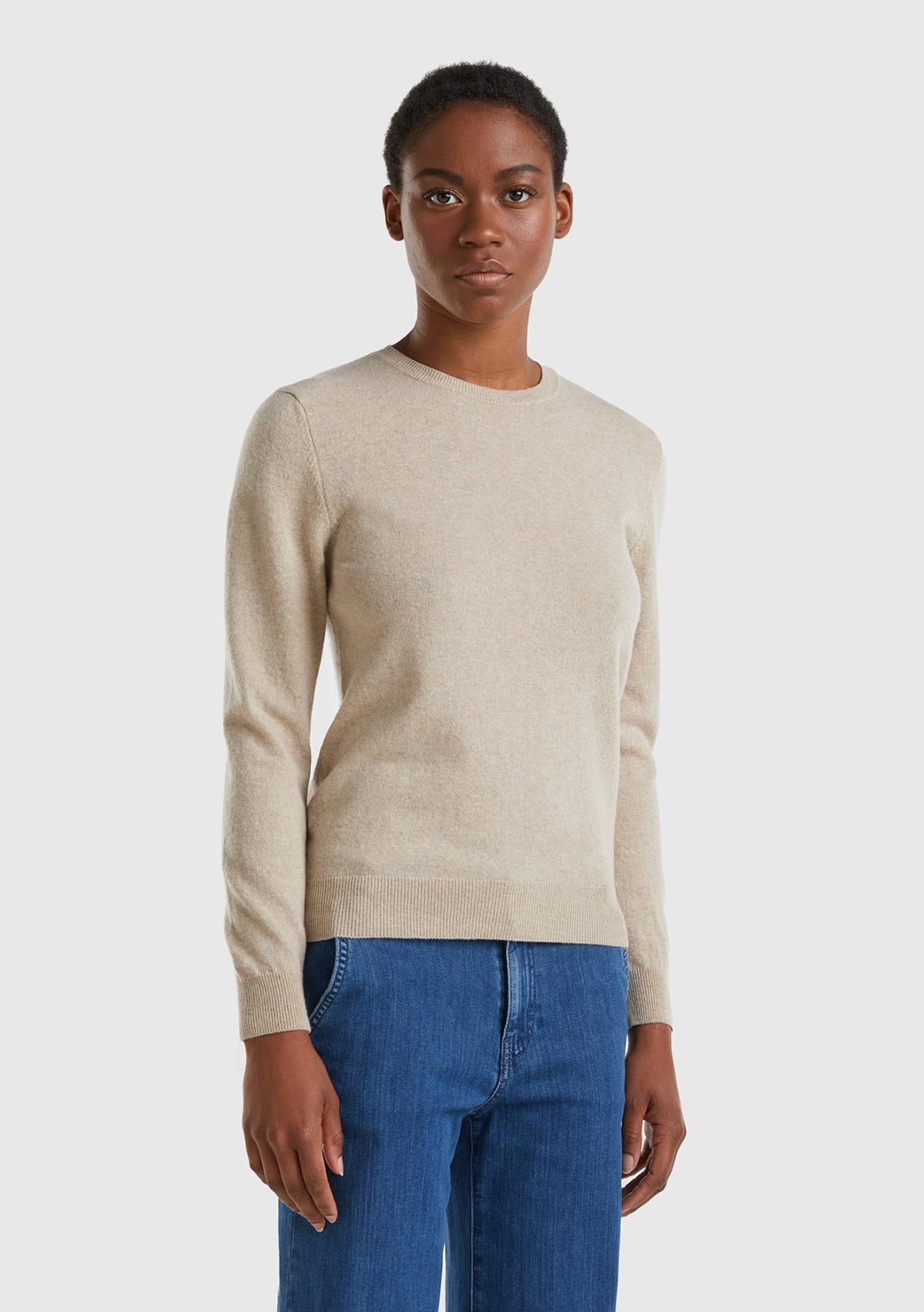 Kadın Bej Melanj Bisiklet Yaka %100 Merino Kazak. Koyun Yünü İçerir