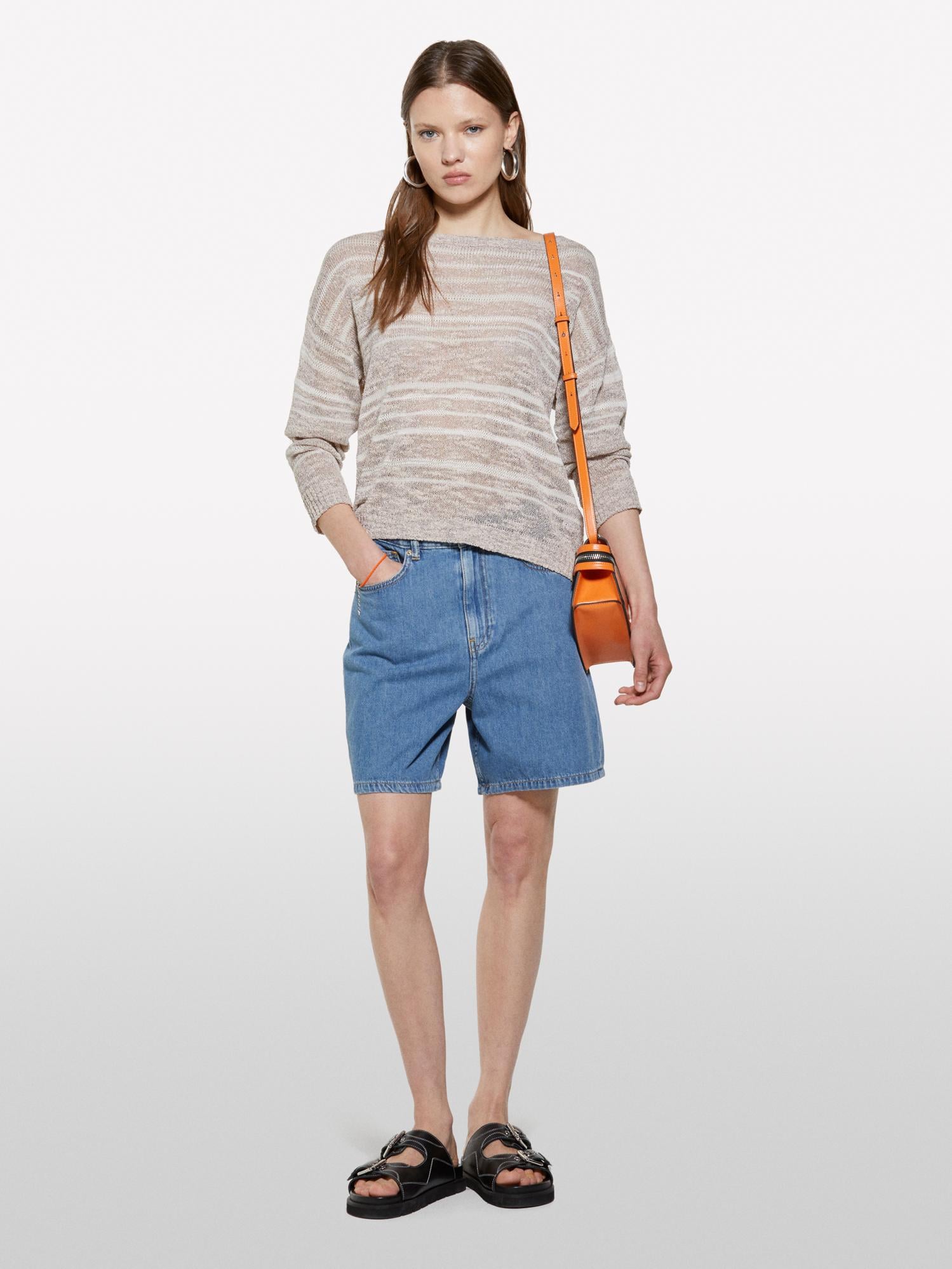 Kadın Bej Pamuk Karışımlı Kayık Yaka Regular Fit Kazak