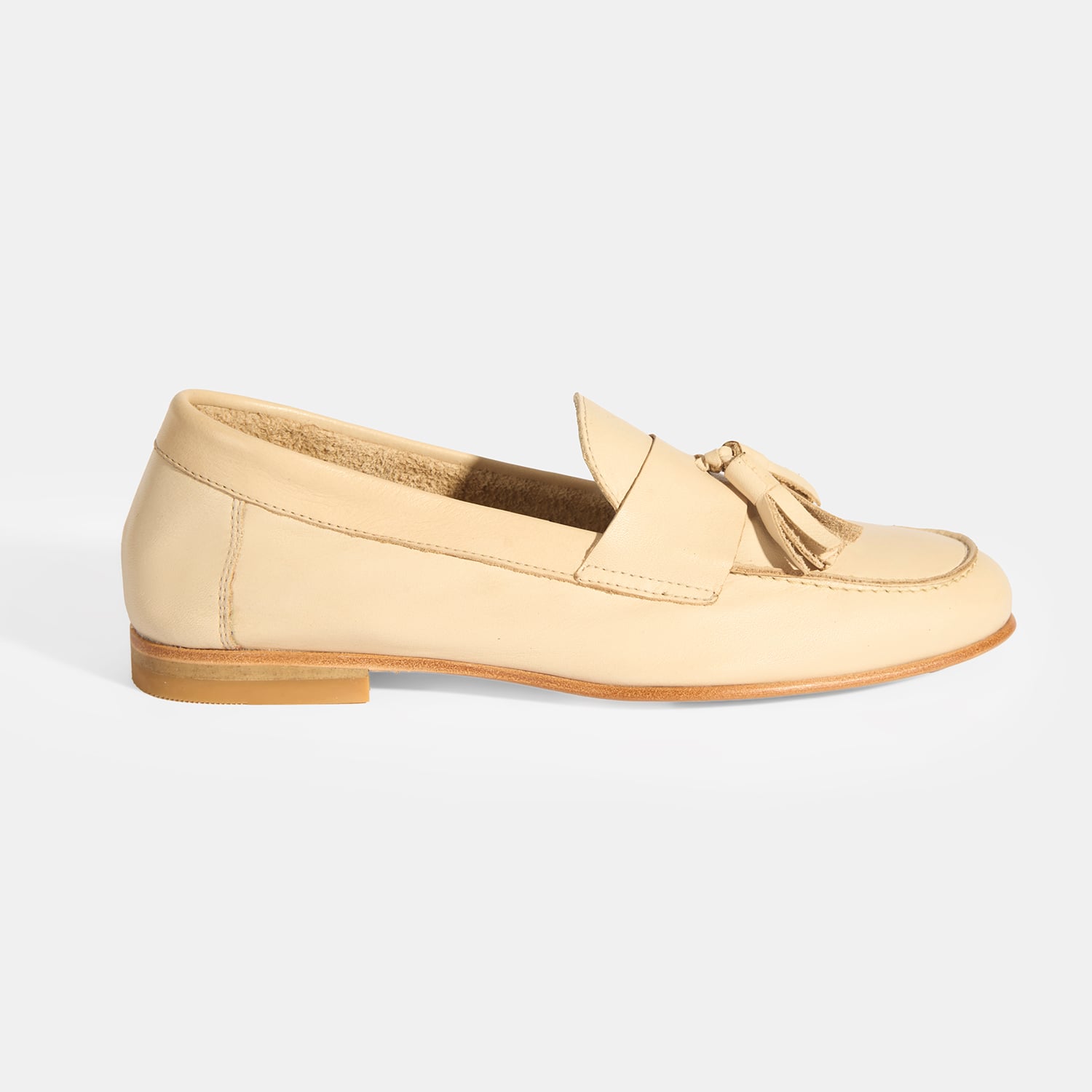 %100 koyun derisinden üretilmiştir.-%100 deri, deri iç tabanlı, astarsız, püskül detaylı, kösele tabanlı, kadın loafer.