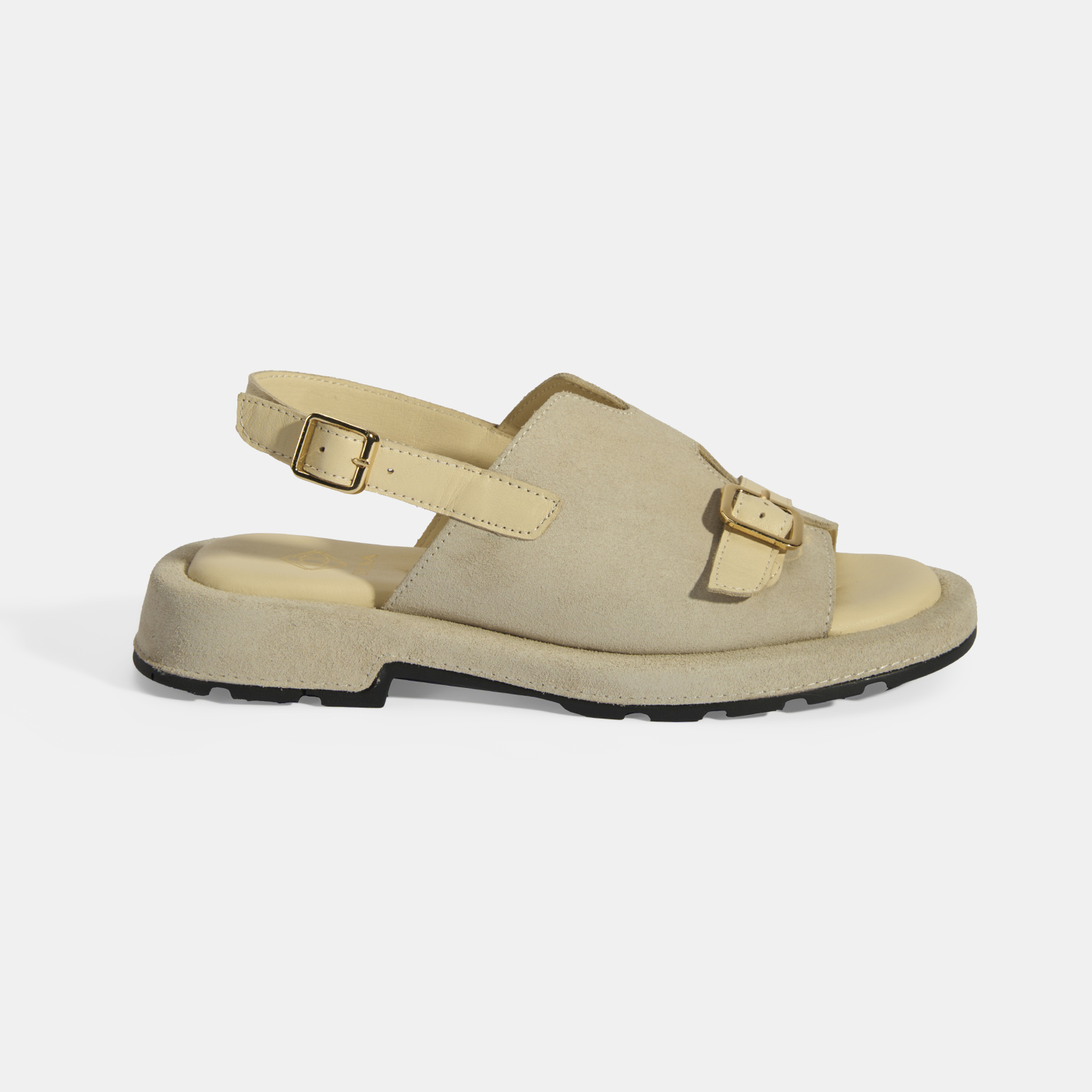 %100 dana derisinden üretilmiştir.-%80 süet deri, %20 deri, deri iç tabanlı, deri astarlı, ayarlanabilir metal toka detaylı, süet deri kapalamlı termo tabanlı, kadın sandalet.