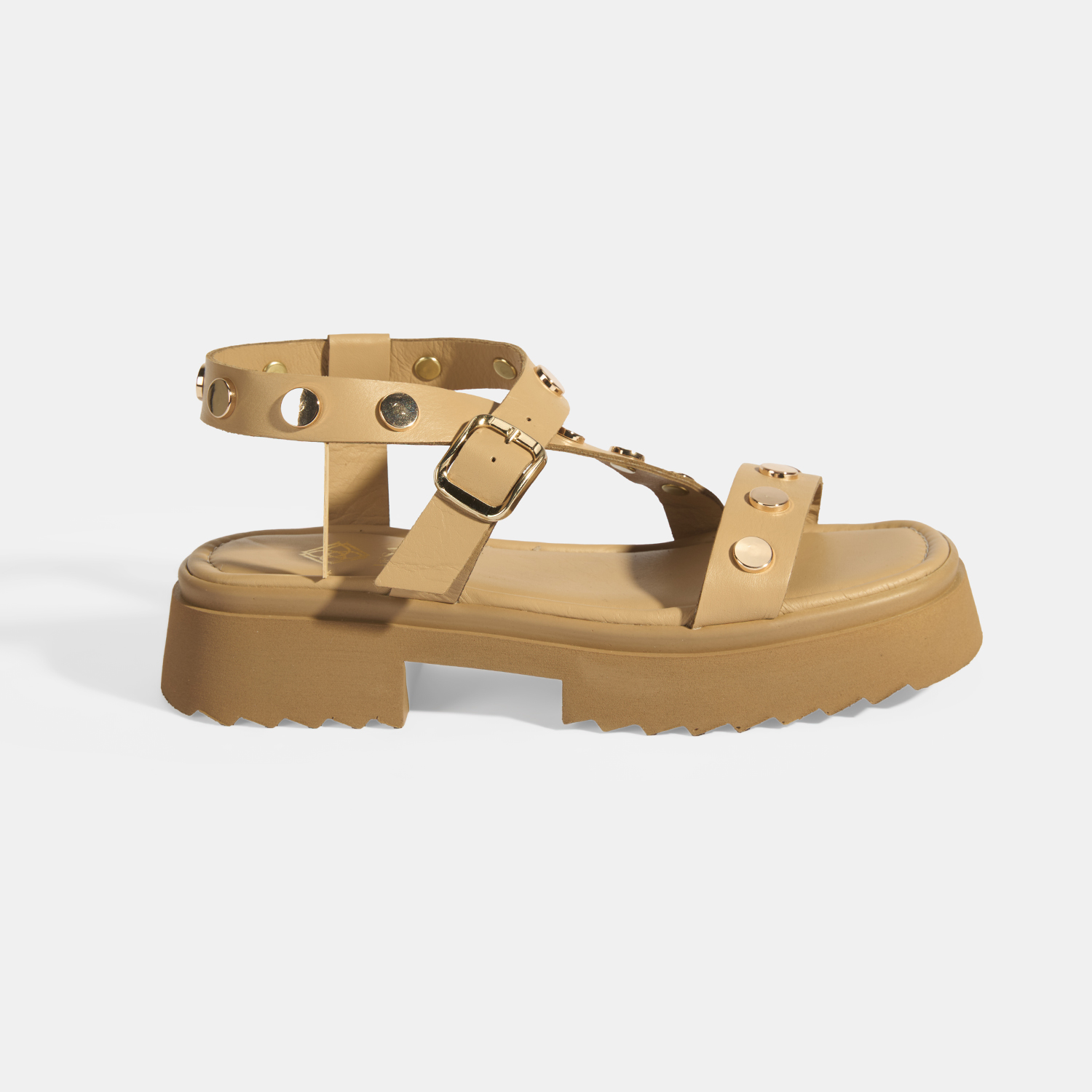 Kadın Bej Zımba Detaylı Deri Sandalet
