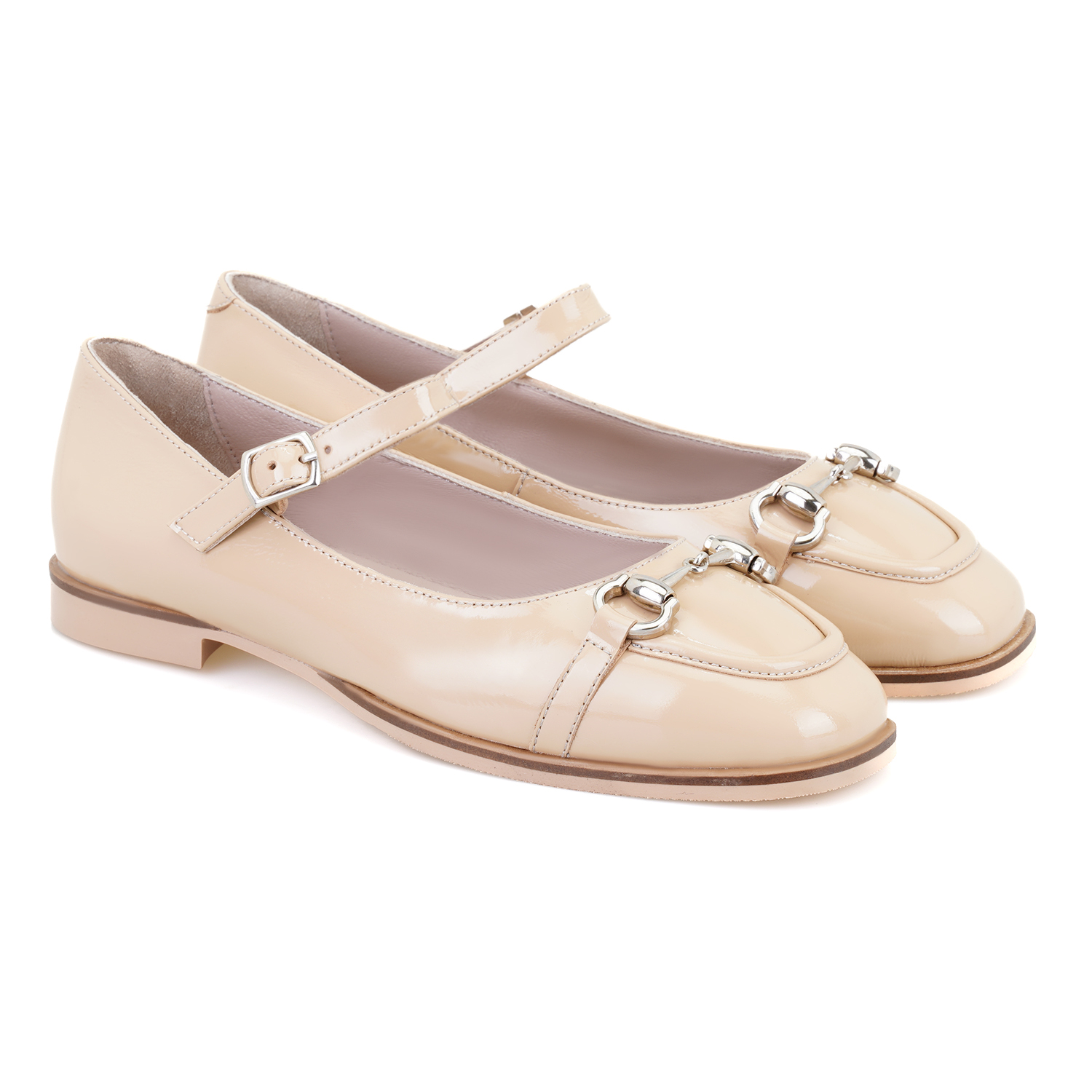 Kadın Bej Zincir Detaylı Mary Jane Rugan Deri Babet