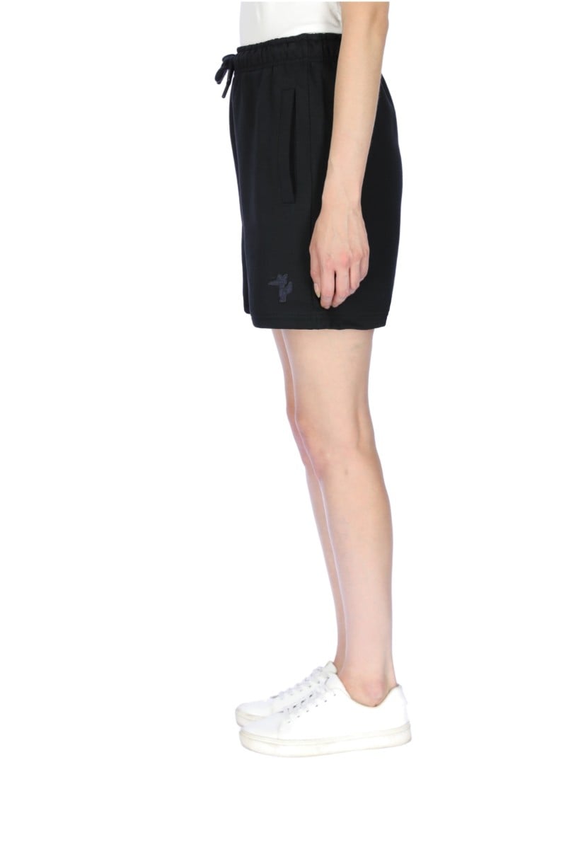 Beli lastikli, bağcıklı, 2 adet cepli, ön paçada figür arma detaylı sweat short.