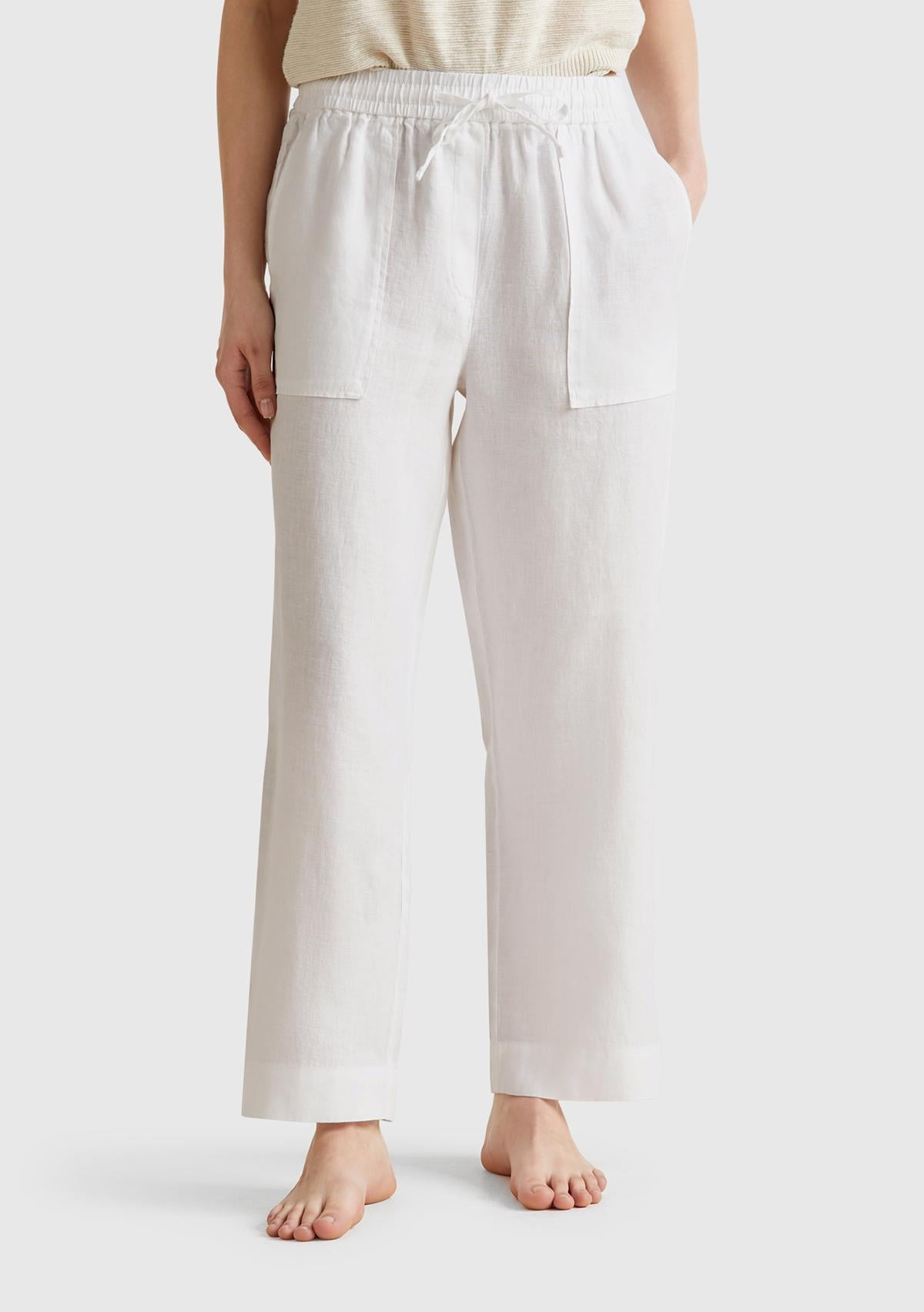 Kadın Beyaz %100 Keten Büzgü İpli Cepli Pantolon