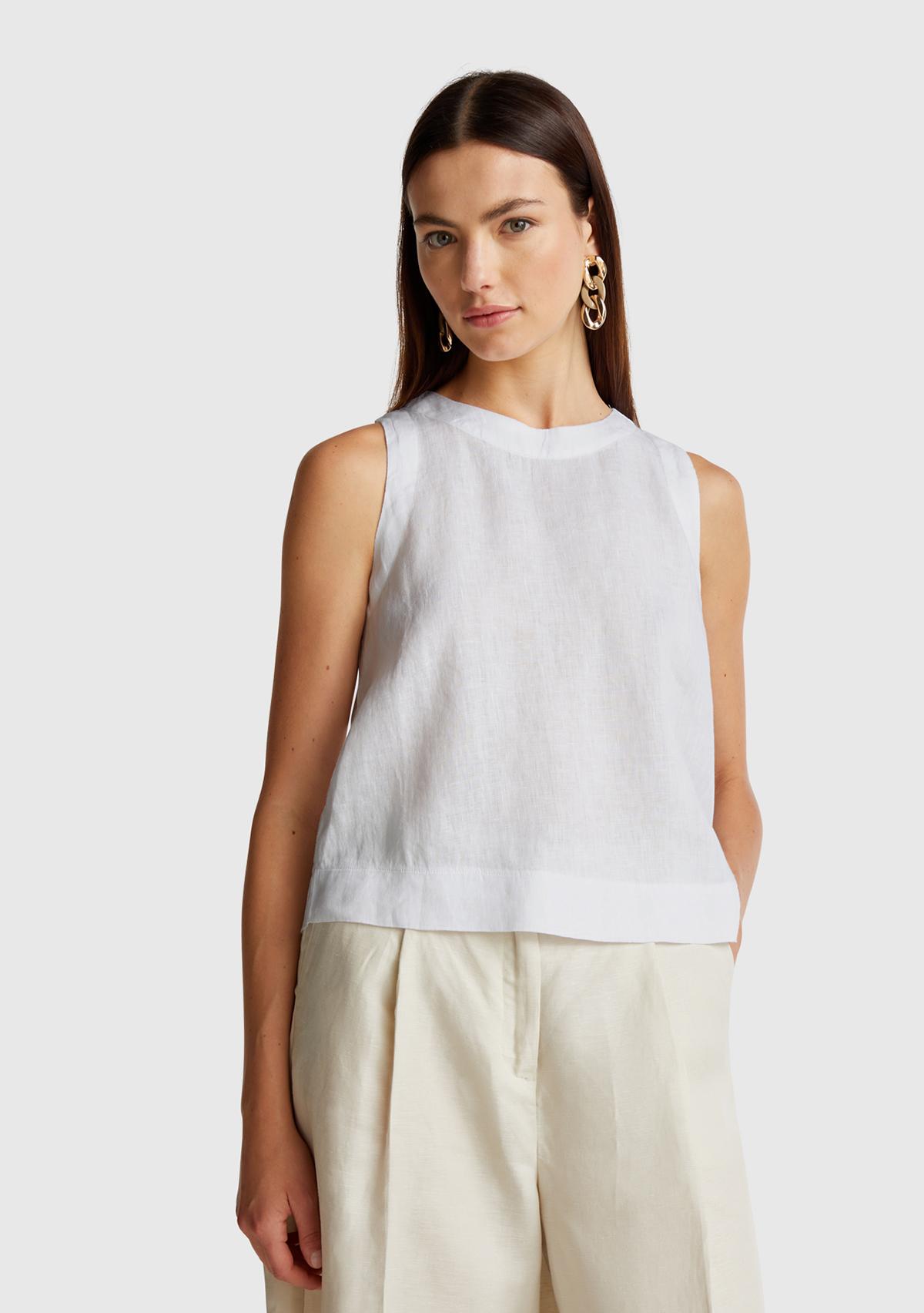 Kadın Beyaz %100 Keten Kolsuz Bluz