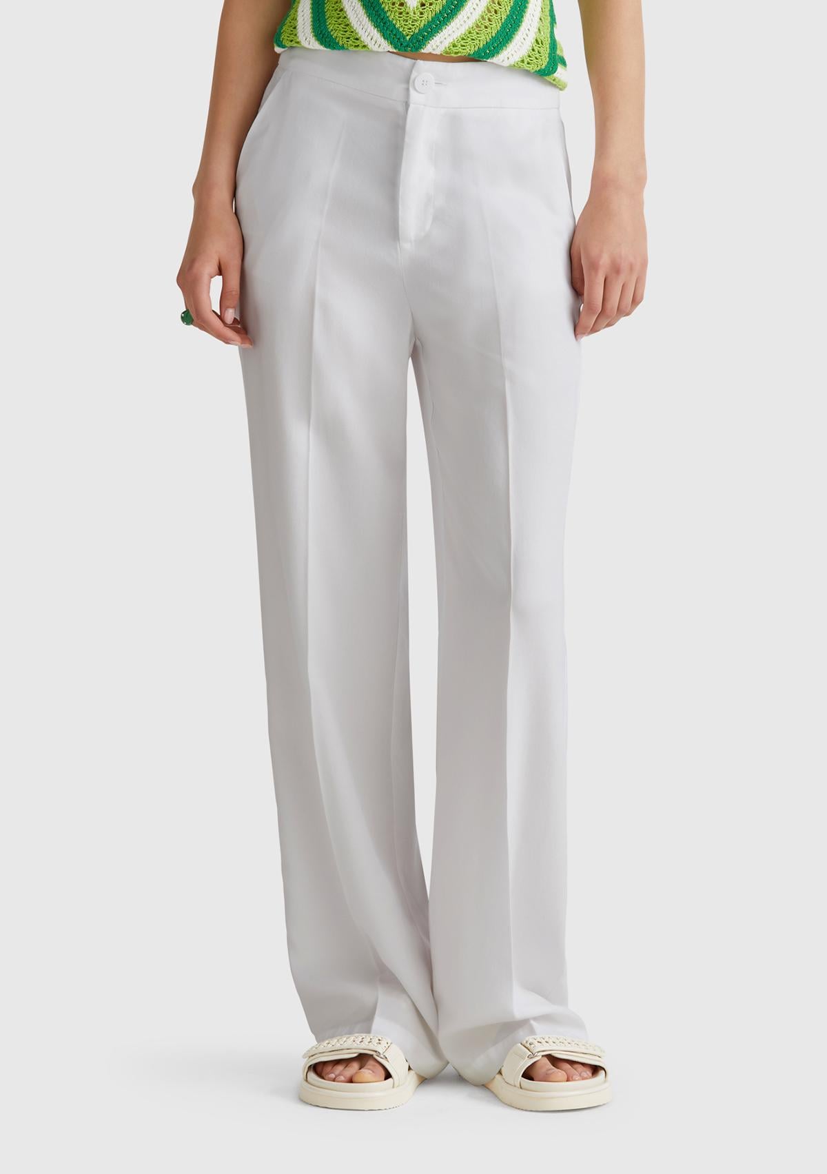 Kadın Beyaz %100 Liyosel Beli Lastikli Düz Paça Pantolon