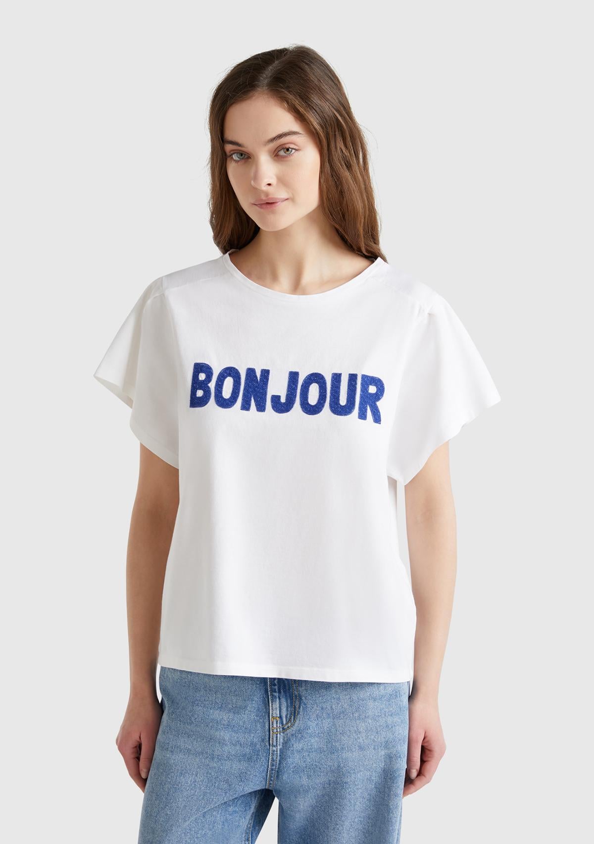 Kadın Beyaz %100 Pamuk Önü Yazı Baskılı Relax Fit T-Shirt