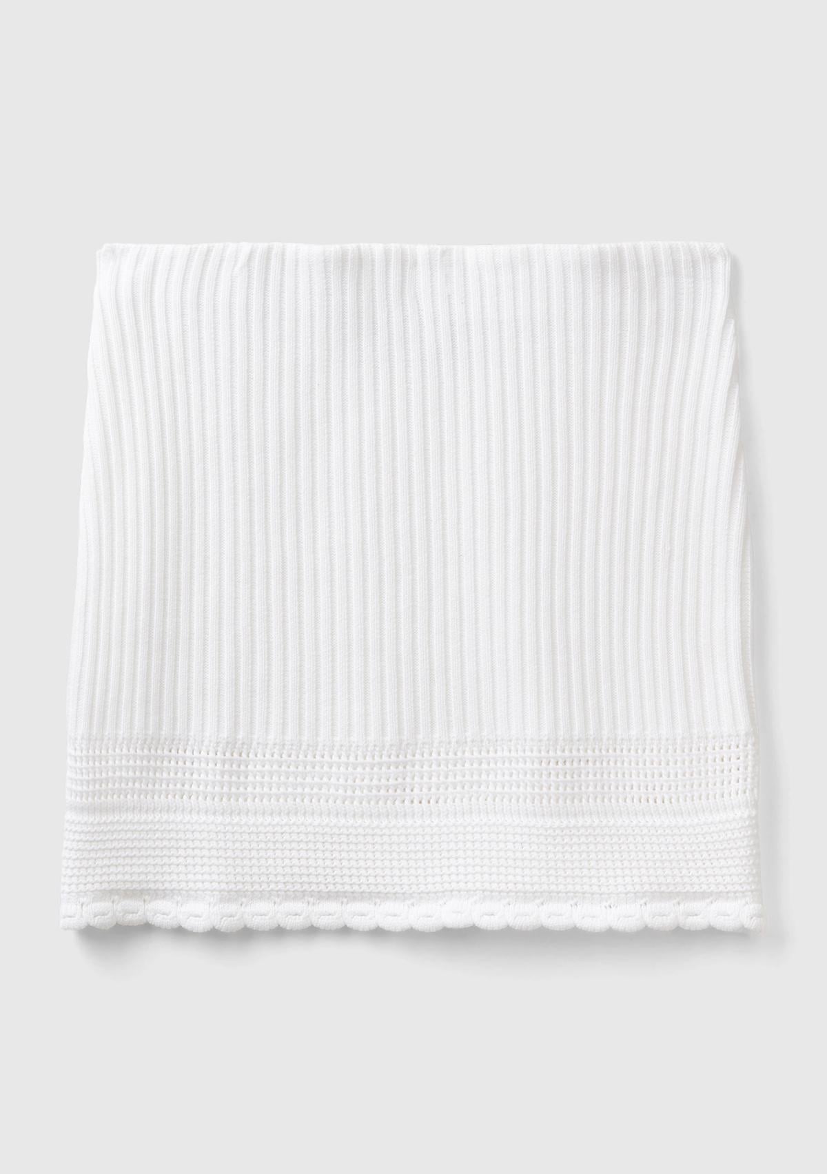 Kadın Beyaz %100 Pamuk Örgü Motifli Altı Saçaklı Triko Mini Etek