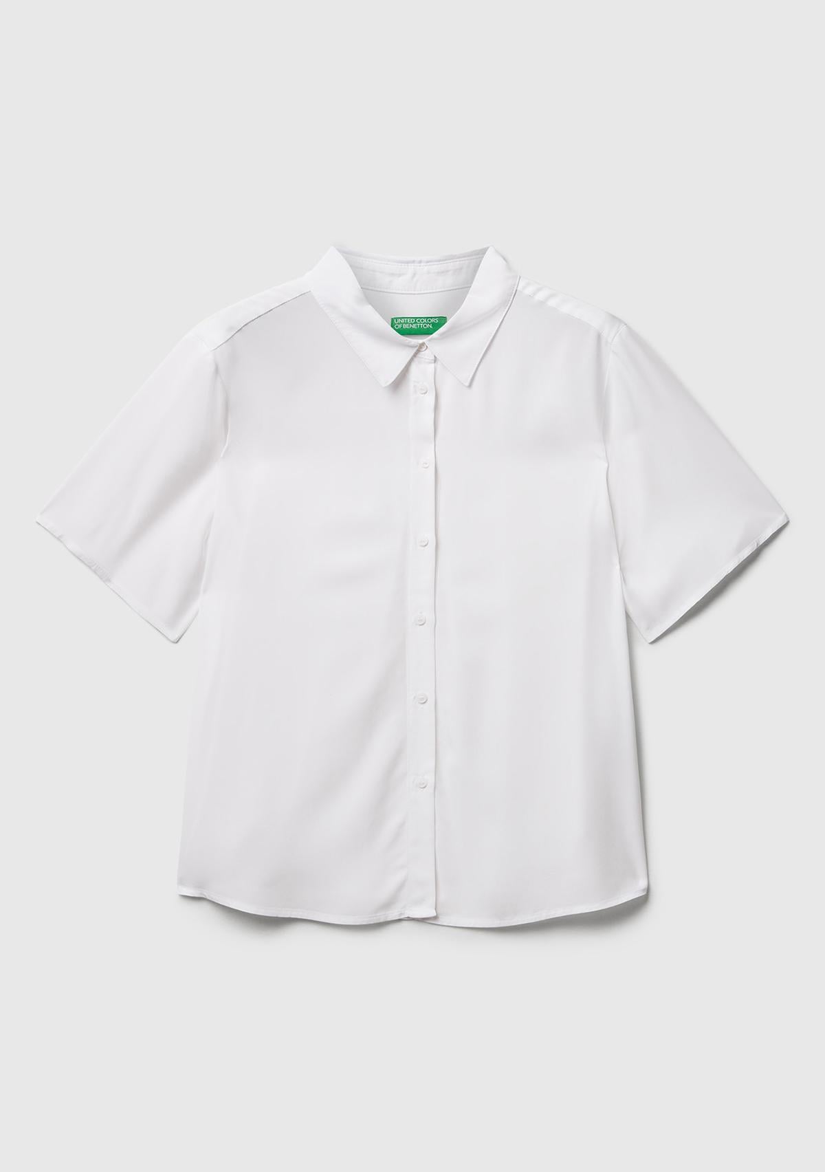 Kadın Beyaz %100 Viskoz Düğmeli Kısa Kollu Gömlek