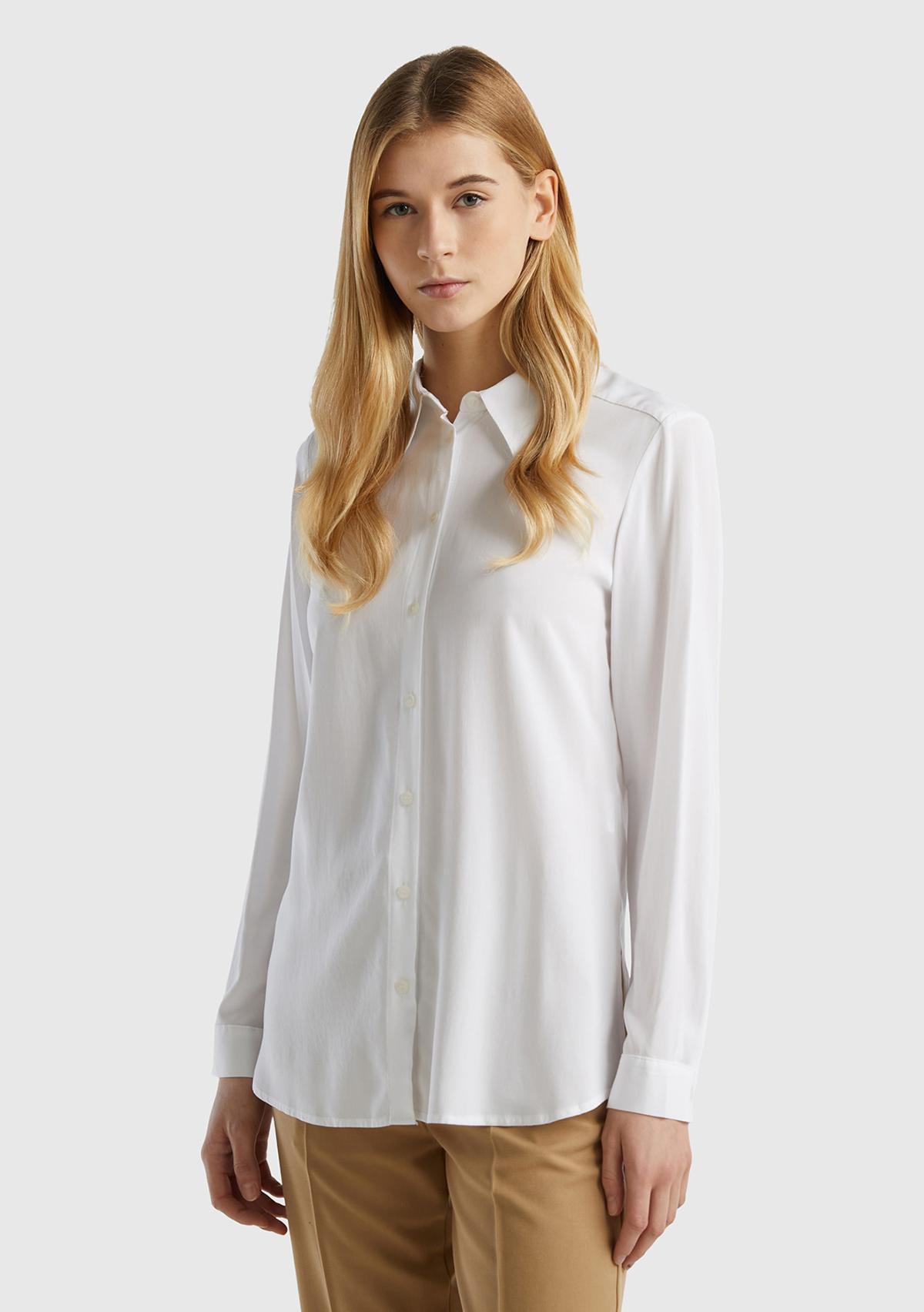 Kadın Beyaz %100 Viskoz Etek Ucu Yuvarlak Kesim Düz Gömlek