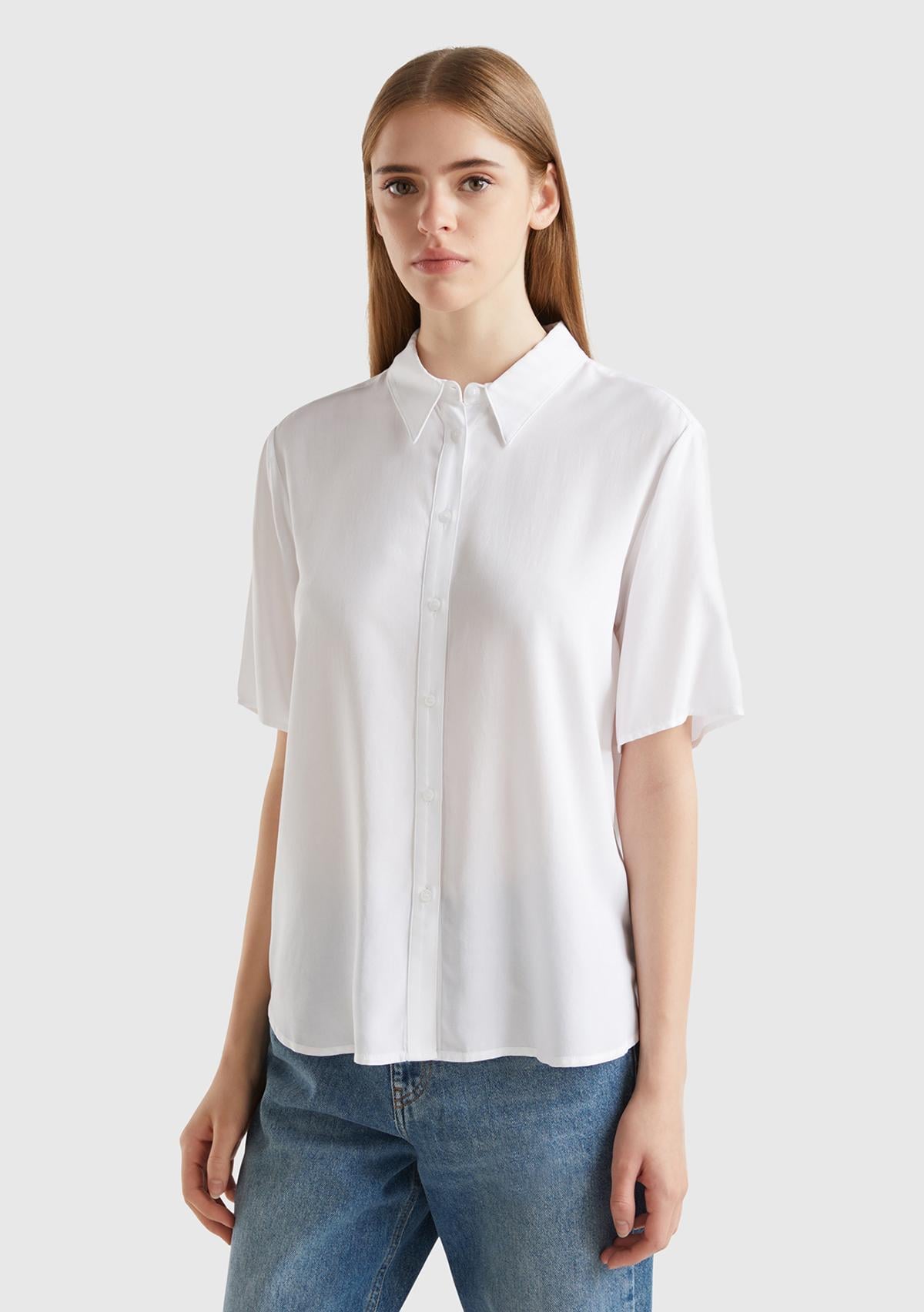 Kadın Beyaz %100 Viskoz Yarım Kollu Düz Gömlek