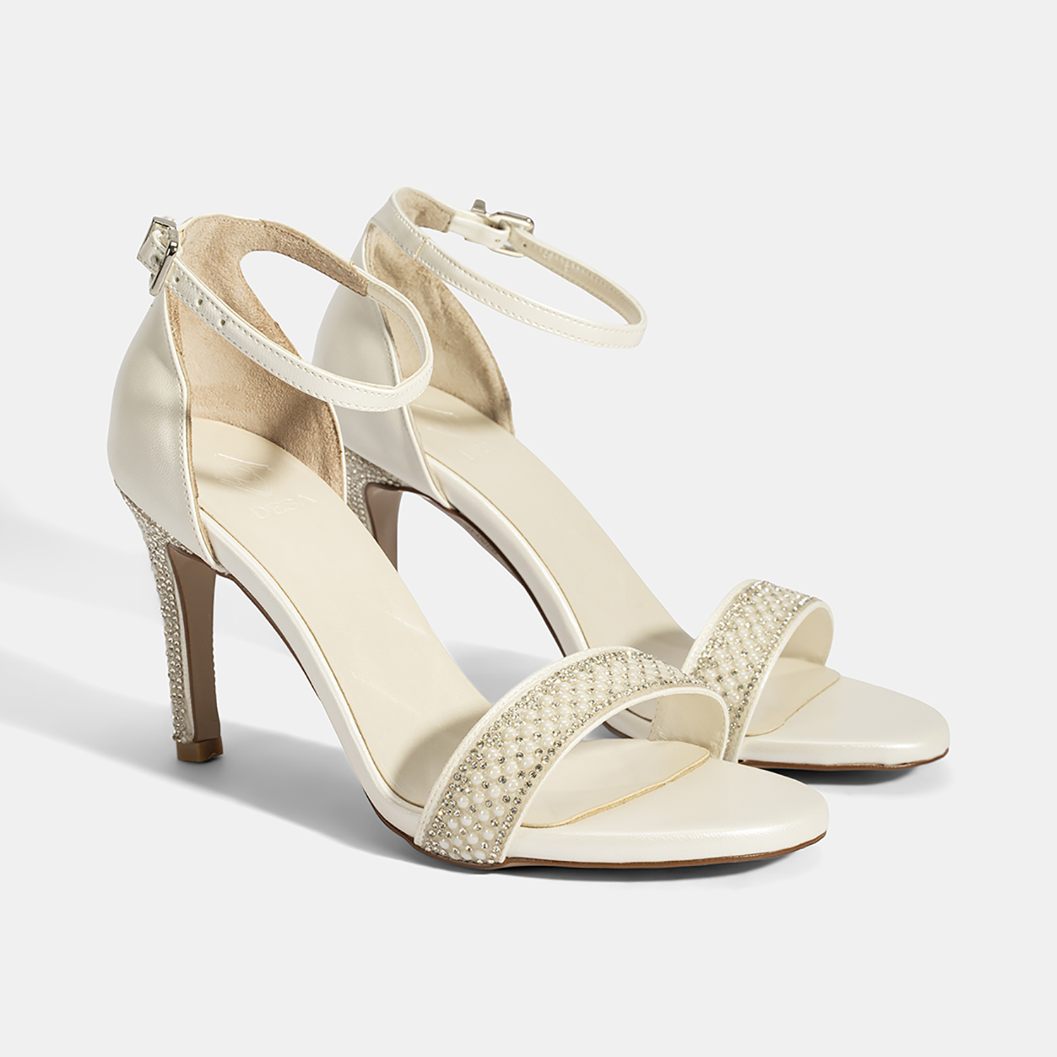 Kadın Beyaz Ayarlanabilir Tokalı Taşlı Topuklu Abiye Sandalet