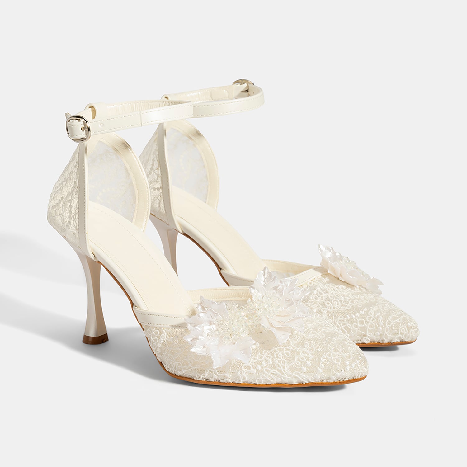 Kadın Beyaz Dantel Detaylı Taşlı Topuklu Gelin Ayakkabısı
