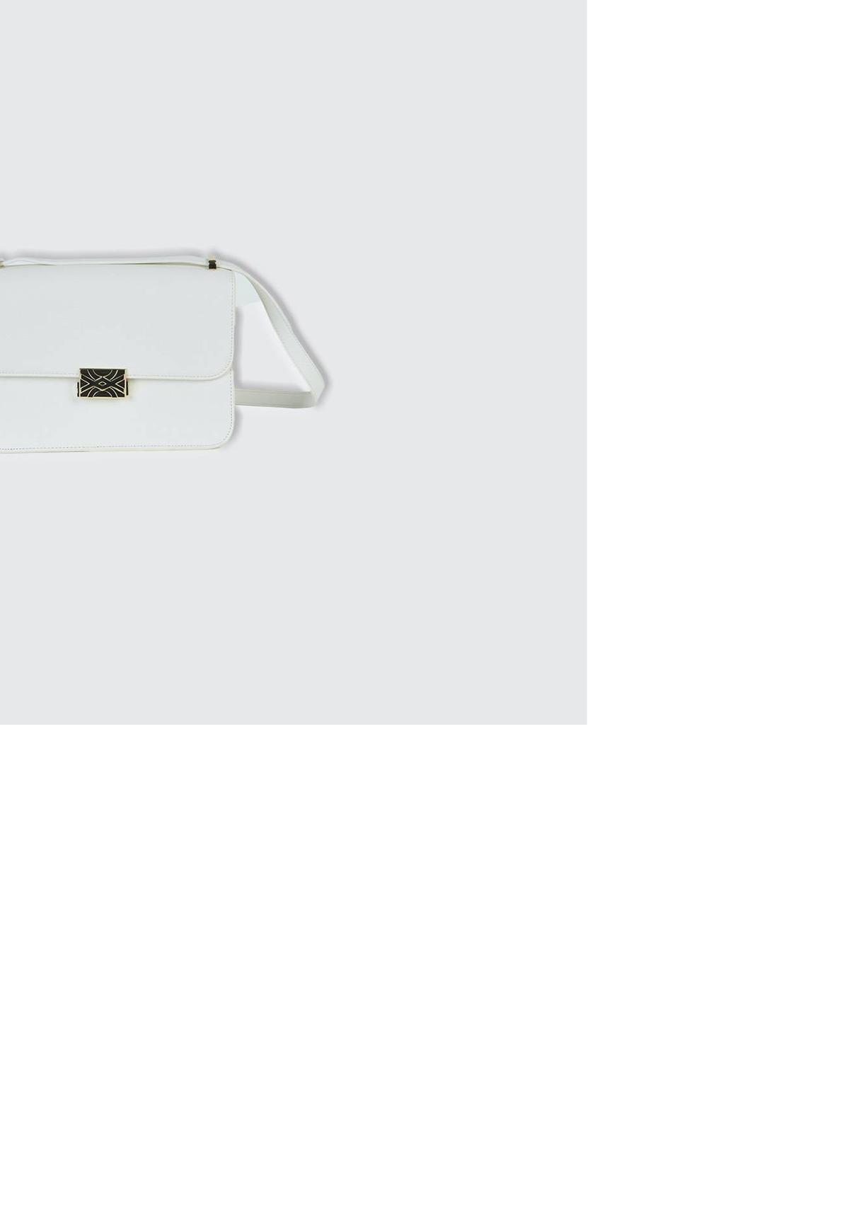Kadın Beyaz Logo Detaylı Metal Tokalı Çanta