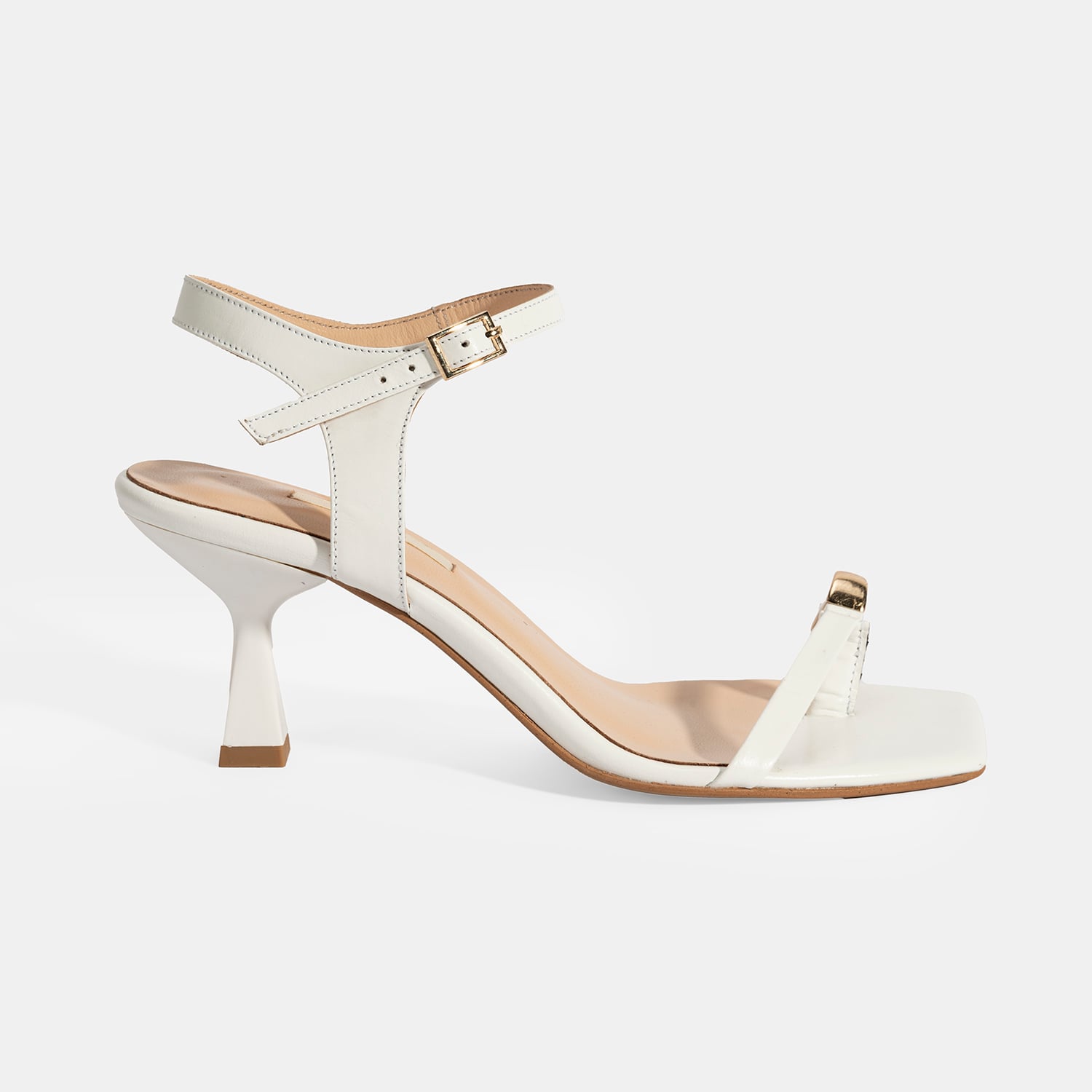Kadın Beyaz Metal Aksesuarlı Parmak Arası Topuklu Ayakkabı