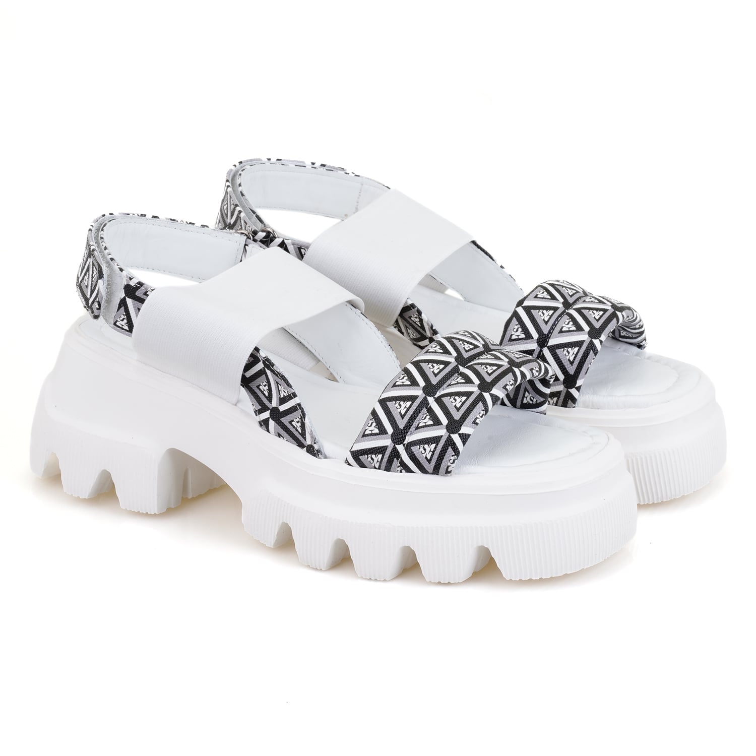 Kadın Beyaz Monogram Desenli Dolgu Topuklu Sandalet