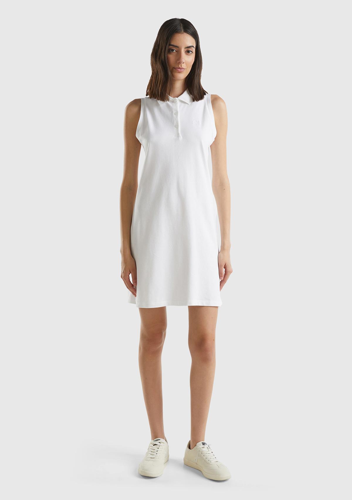 Kadın Beyaz Pamuk Karışımlı Göğsü Logo İşlemeli Düğmeli Polo Yaka Elbise