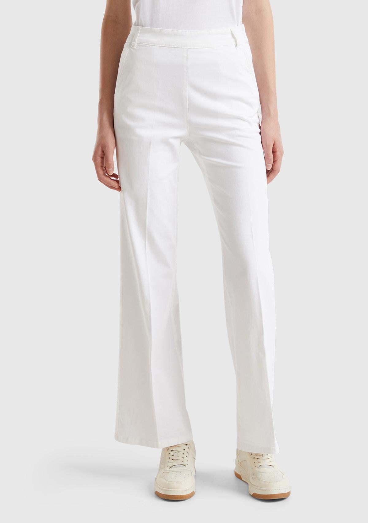 Kadın Beyaz Pamuk Karışımlı Rahat İspanyol Paça Pantolon