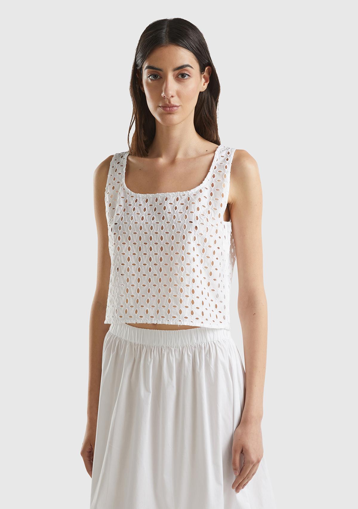 Kadın Beyaz Pamuk Karışımlı Tamamı Desenli Yandan Fermuarlı Askılı Bluz