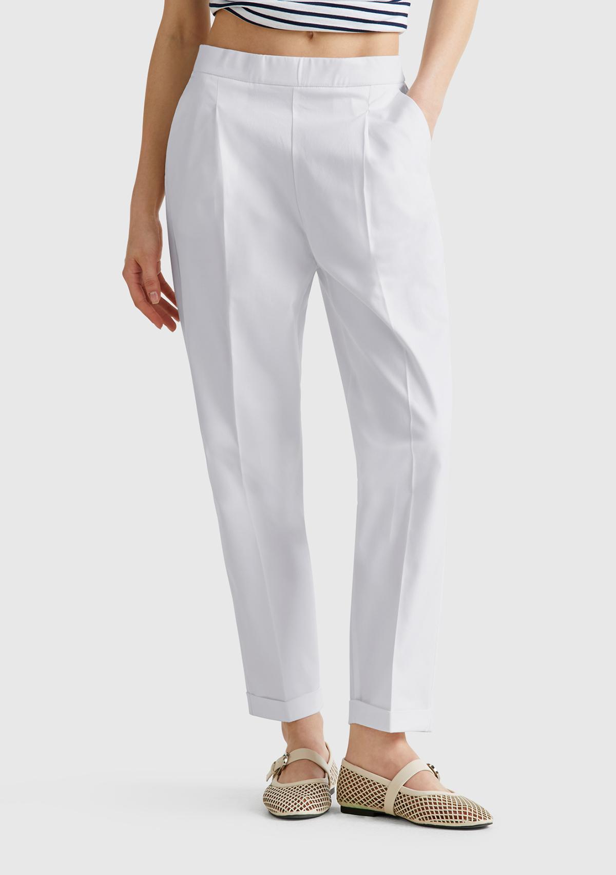 Kadın Beyaz Streç Pamuklu Arka Beli Lastikli Cepli Pantolon