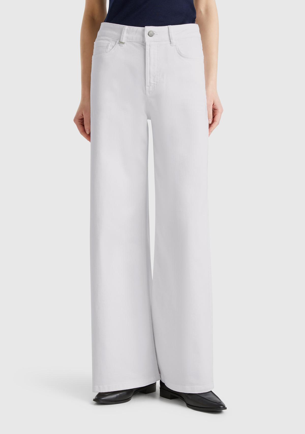 Kadın Beyaz Streç Pamuklu Arkası Logo Etiketli Bol Kesim Pantolon