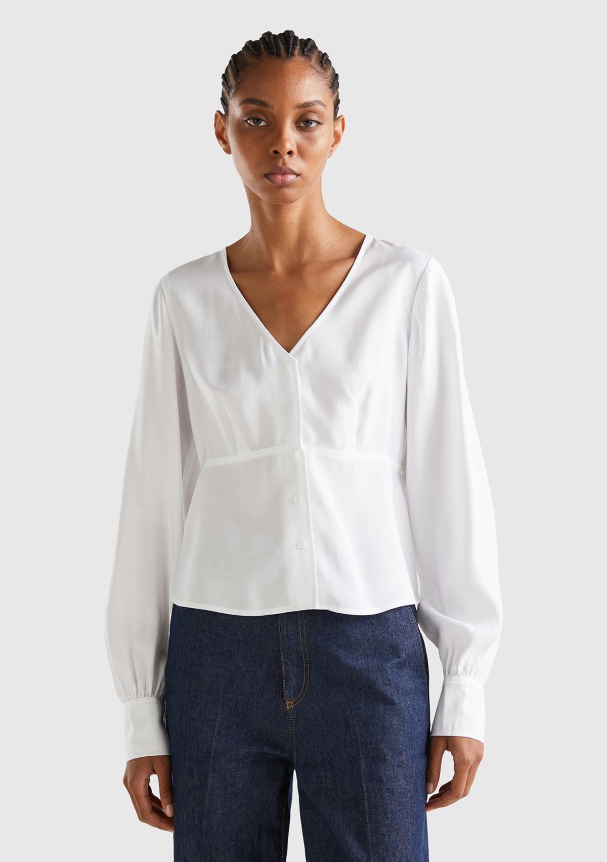 Kadın Beyaz Viskoz Karışımlı Gömlek
