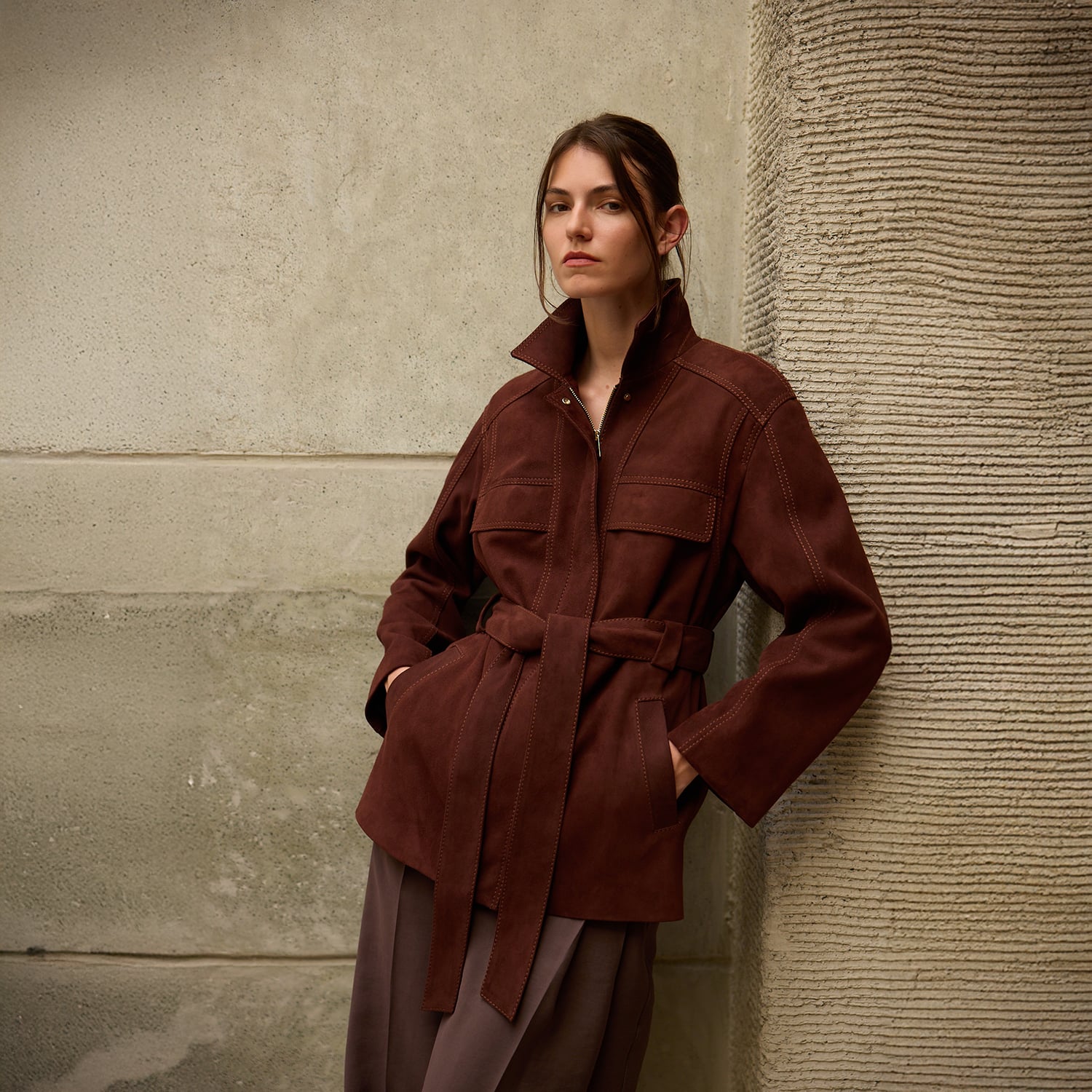 Kadın yakalı deri trençkot. Önden gizli metal fermuarlı ve gizli çıtçıt kapamalıdır. Ön üstte iki adet kapaklı ve altta fleto cebi mevcuttur. Belinde bağlama kemer detayı vardır. Günlük kullanım için çok uygun bir kalıptır. %100 Koyun derisi olup astarlı çalışılmıştır.-Kadın yakalı deri trençkot. Önden gizli metal fermuarlı ve gizli çıtçıt kapamalıdır. Ön üstte iki adet kapaklı ve altta fleto cebi mevcuttur. Belinde bağlama kemer detayı vardır. Günlük kullanım için çok uygun bir kalıptır. %100 Koyun derisi olup astarlı çalışılmıştır.