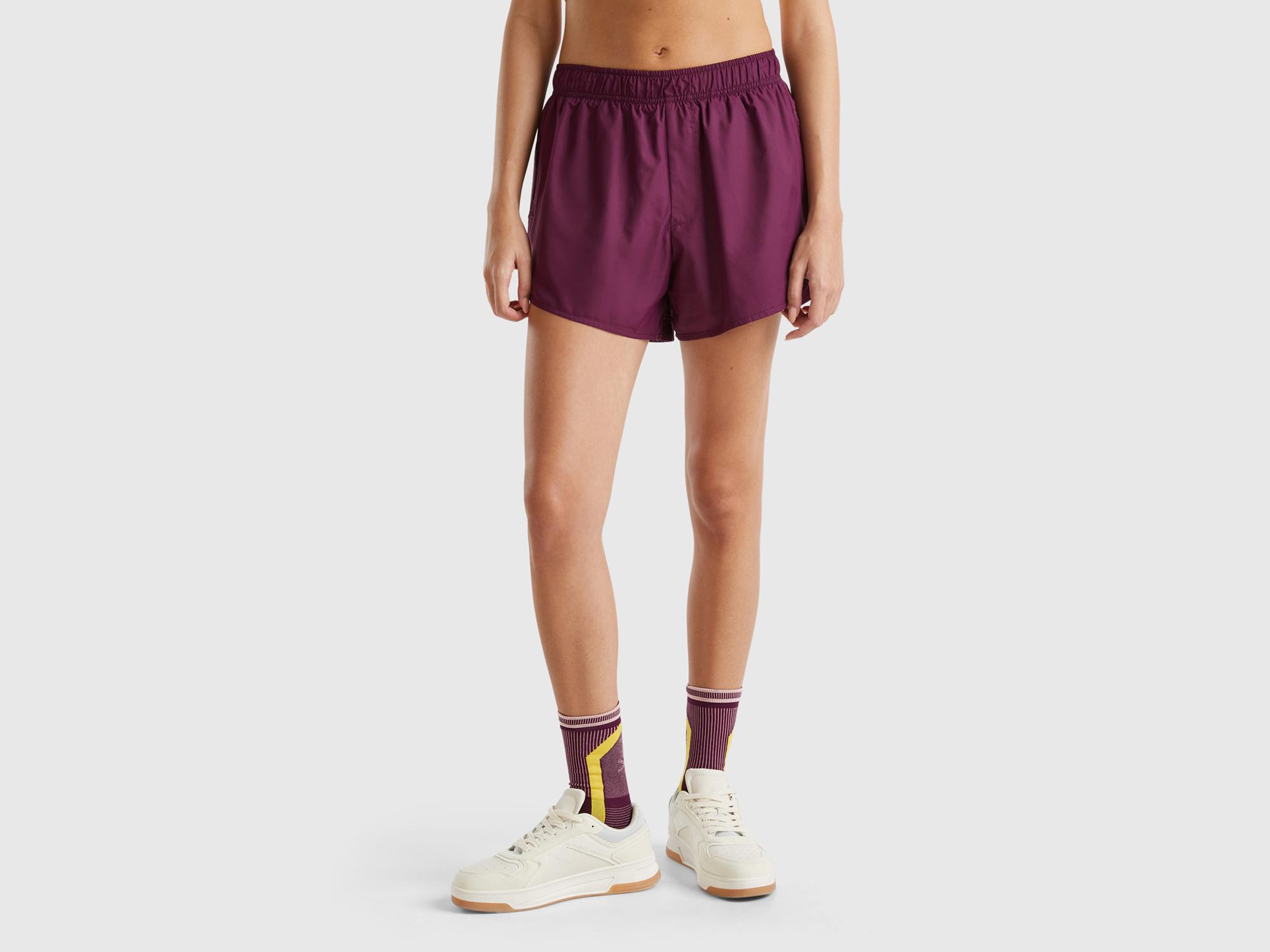 Kadın Bordo Logo Baskılı Beli Büzgülü Yanları Yırtmaçlı Şort