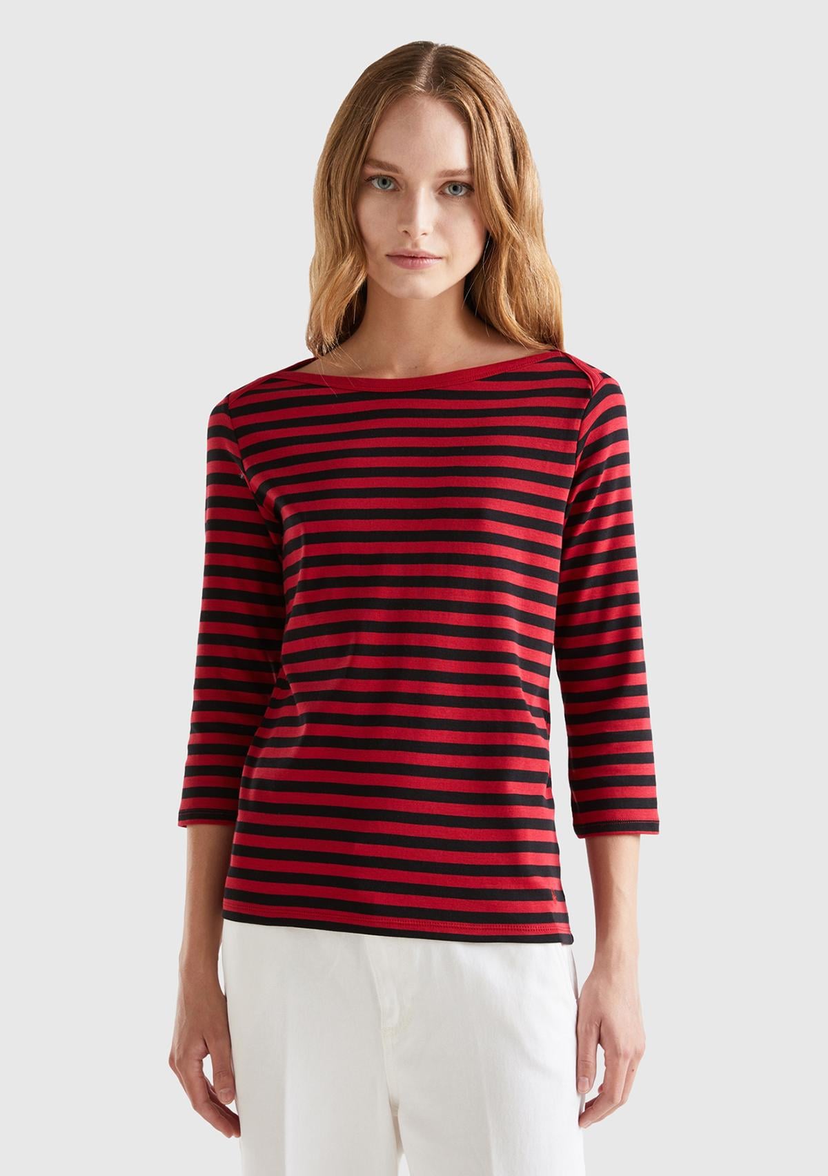 Kadın Bordo Truvakar Kol Çizgili Tshirt