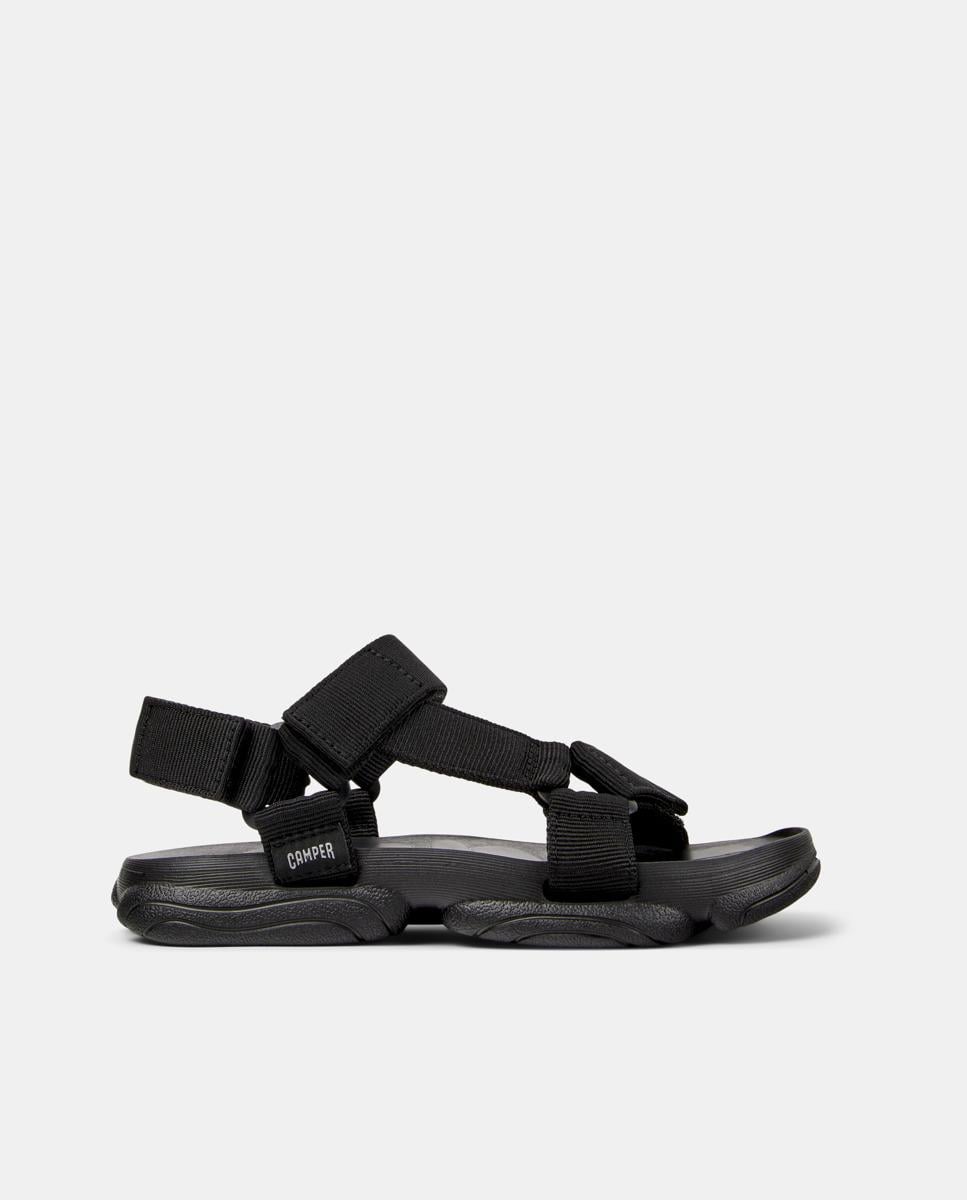 Black recycled PET women's sandal with hook & loop system and XL EXTRALIGHT® EVA Dual-Canal outsoles (20% recycled).
