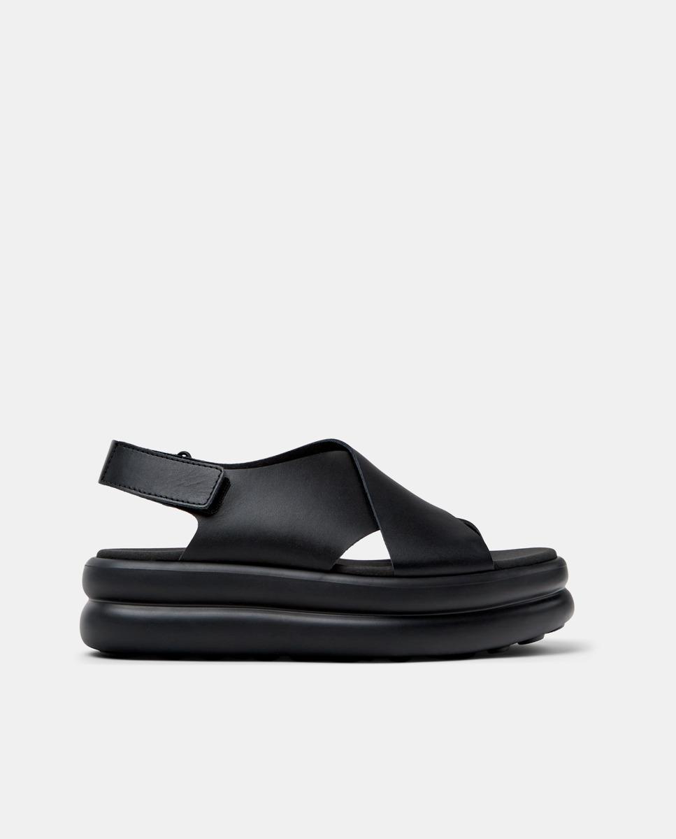 Black leather women's sandals with EVA footbed, hook & loop system, and XL EXTRALIGHT® EVA outsoles.