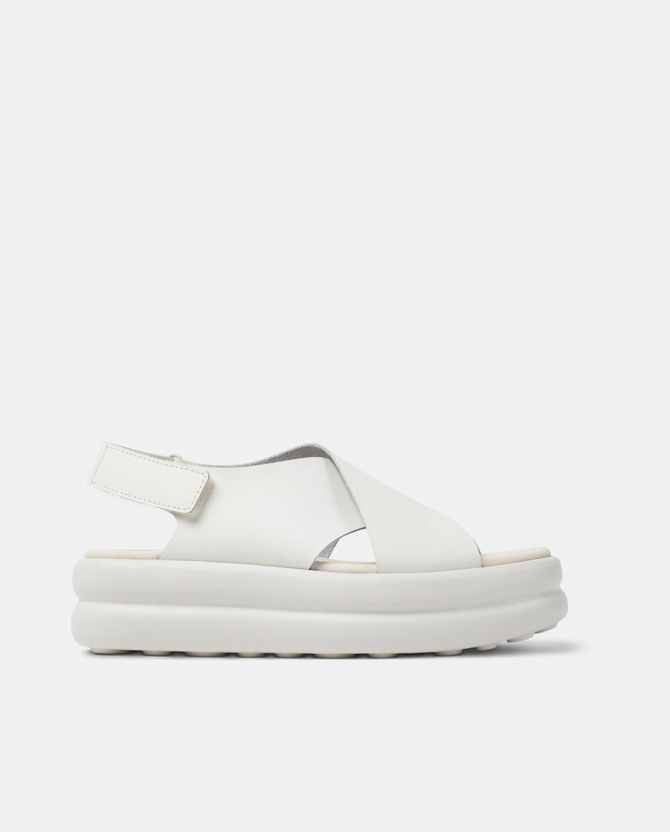 EVA tabanlıklı ve XL EXTRALIGHT® EVA dış tabanlı, cırtcırtlı, beyaz dana derisi kadın sandaleti.