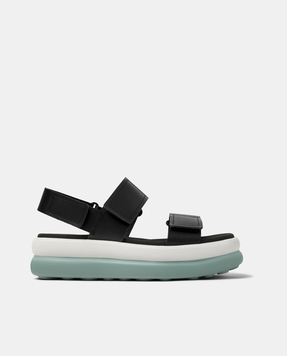 EVA tabanlıklı ve XL EXTRALIGHT® EVA dış tabanlı, cırtcırtlı, siyah dana derisi kadın sandaleti.