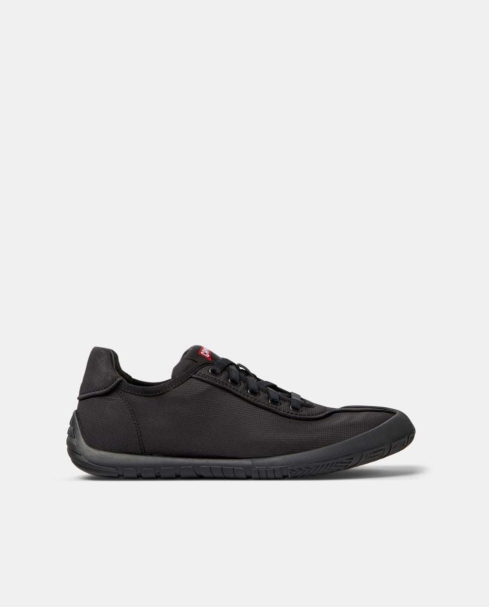 Black recycled PET women's sneakers with OrthoLite® Recycled™ footbeds and rubber outsoles (23% recycled).