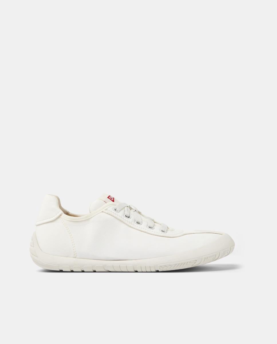White recycled PET women's sneaker with OrthoLite® Recycled™ footbed and recycled rubber outsoles (23% recycled).