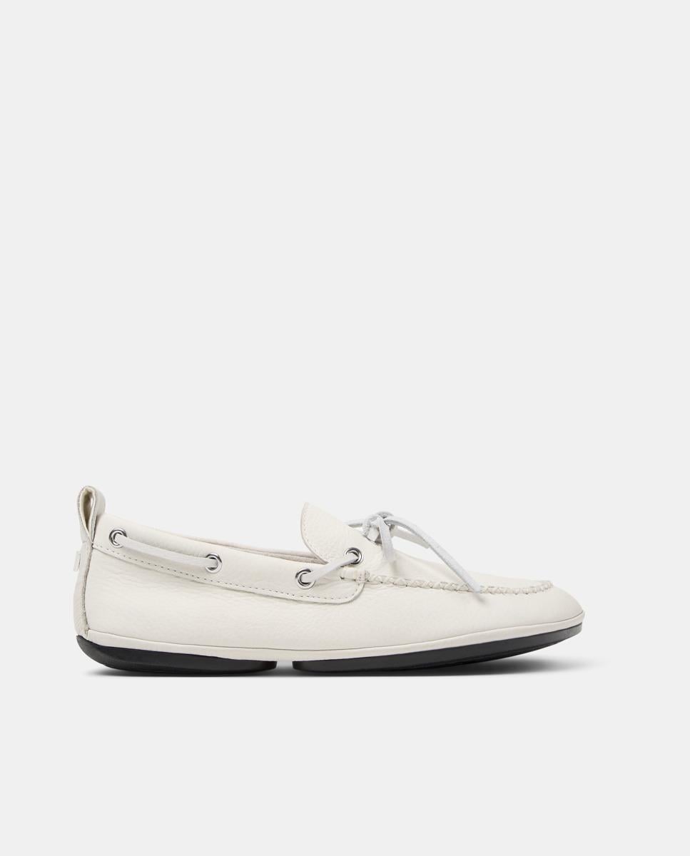 EVA tabanlık ve kauçuk dış tabana sahip, beyaz dana derisinden kadın babeti.