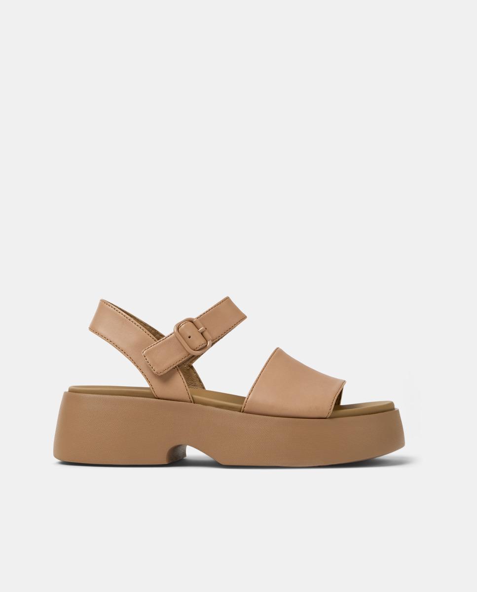 EVA tabanlık ve XL EXTRALIGHT® EVA dış tabana sahip ten rengi dana derisi kadın sandaleti.