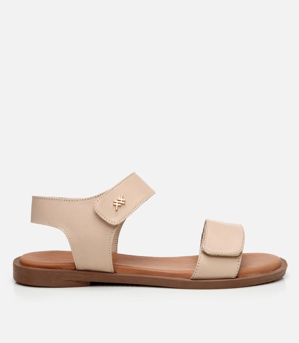 Kadın Deri Bej Ayarlanabilir Düz Sandalet