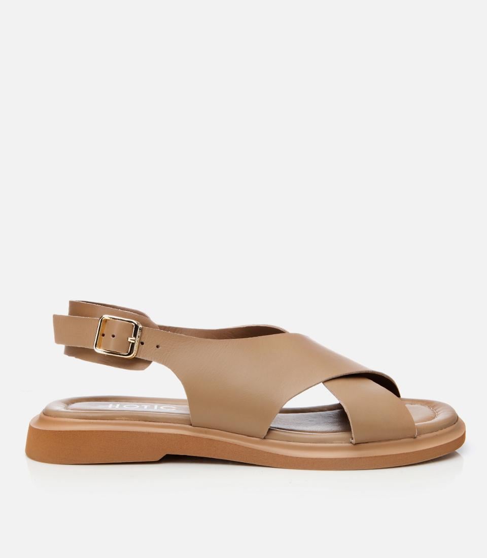 Kadın Deri Bej Kemerli Düz Sandalet