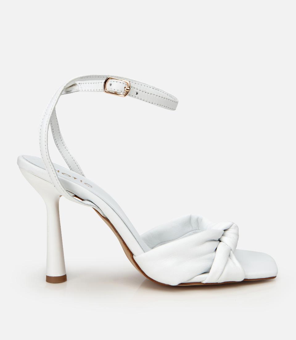 Kadın Deri Beyaz Kemerli Topuklu Sandalet