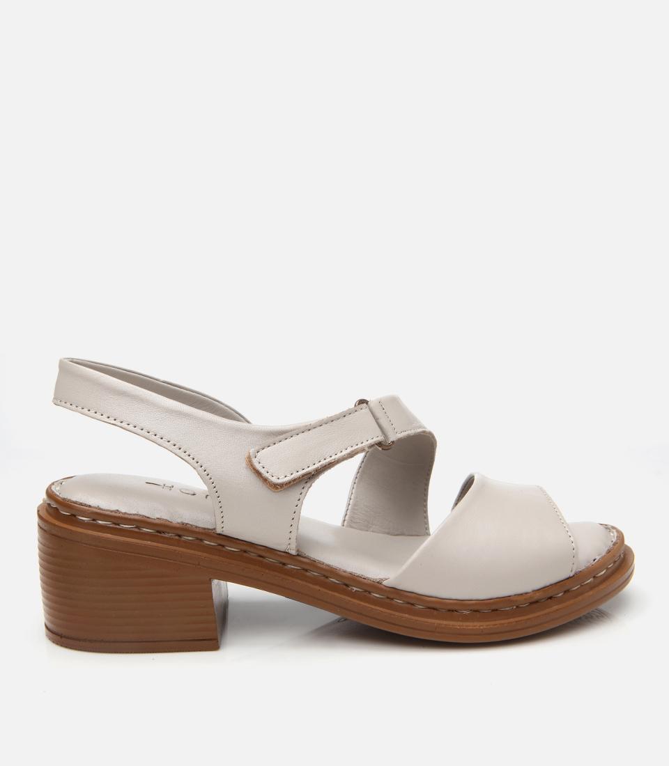 Kadın Deri Ekru Ayarlanabilir Rahat Topuklu Sandalet